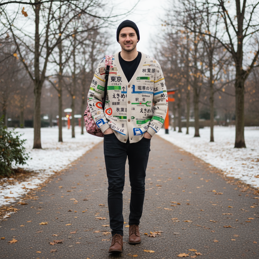 Tokyo‑Tiger Japanese Line Station Sign Ugly Cardigan Sweater – Crazy Sale