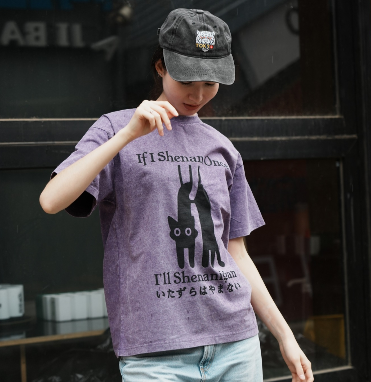 🐱 Design Inspiration: Inspired by Japan’s love for cats and witty humor, this tee features mischievous felines with the slogan “If I Shenan Once, I’ll Shenan Again.”