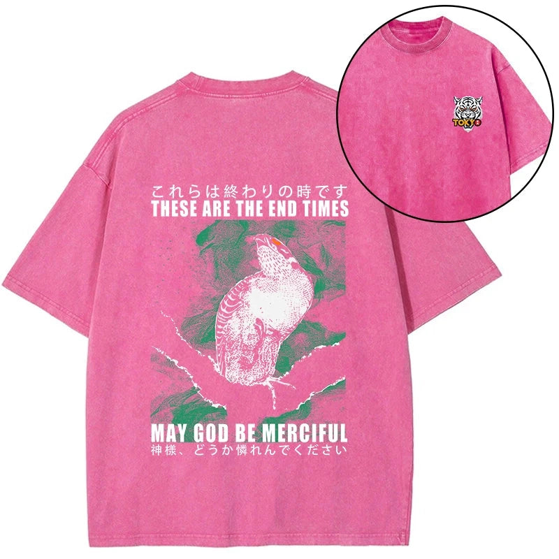 Tokyo-Tiger These Are The End Bird Front Back Washed T-Shirt