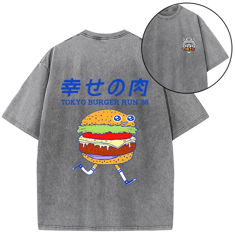 Tokyo-Tiger Tokyo Burger Run Japanese Front Back Washed T-Shirt