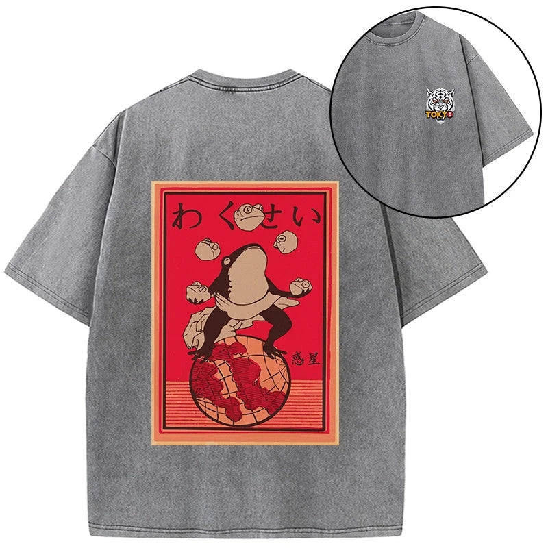 Tokyo-Tiger Wakusei Frog Funny Front Back Washed T-Shirt