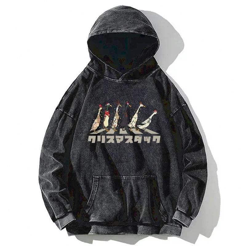 Tokyo-Tiger Funny Christmas Ducks Washed Hoodie