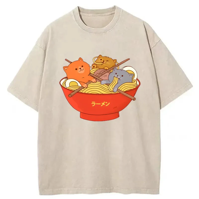 Tokyo-Tiger Retro Ginger Cat Ramen Washed T-Shirt