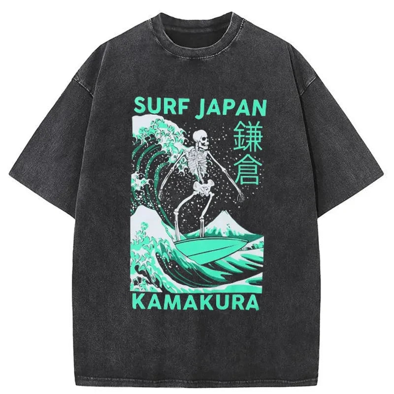 Tokyo-Tiger Surf Japanese Skeleton Washed T-Shirt