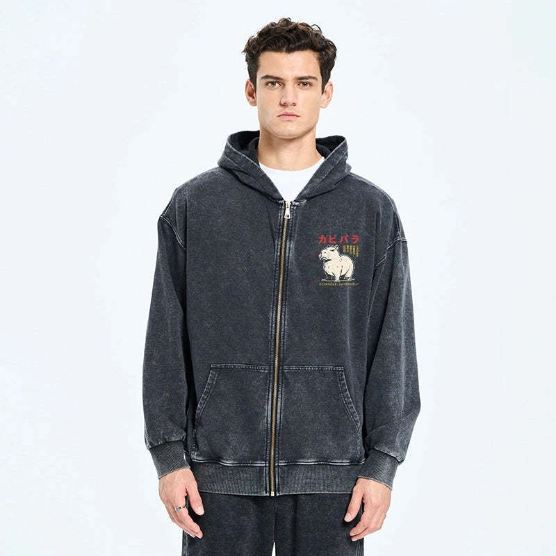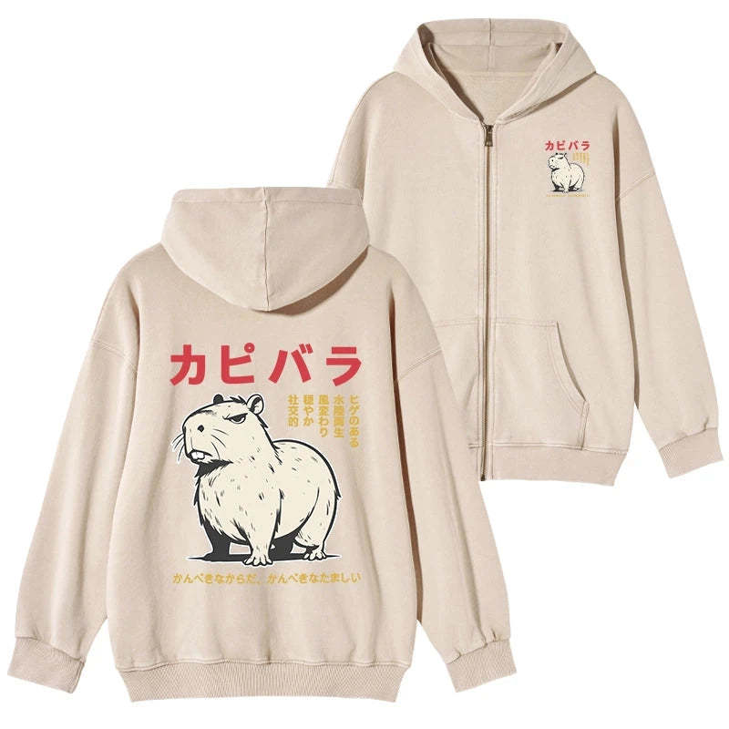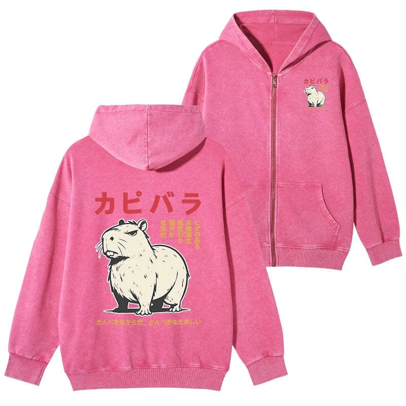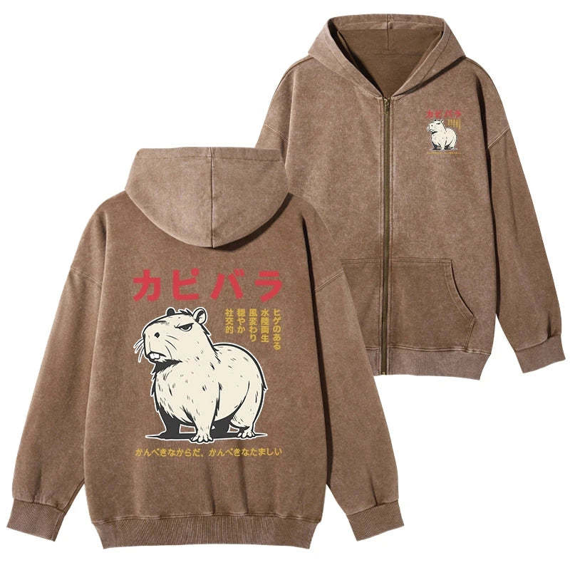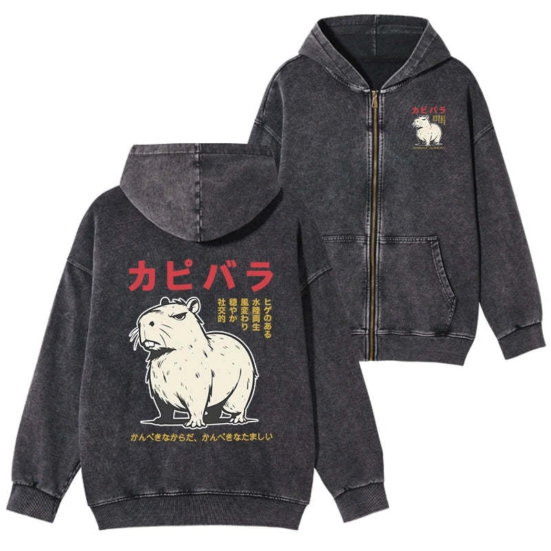 Tokyo-Tiger Angry Capybara Japan Washed Zip Hoodie