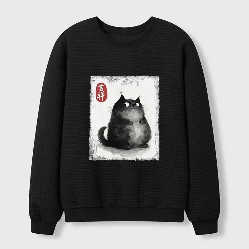 Tokyo-Tiger Auspicious Fluffy Black Cat Ink Painting Waffle Sweatshirt Tokyo-Tiger Waffle Sweatshirt Tokyo-Tiger Waffle Sweatshirt Tokyo-Tiger Waffle Sweatshirt