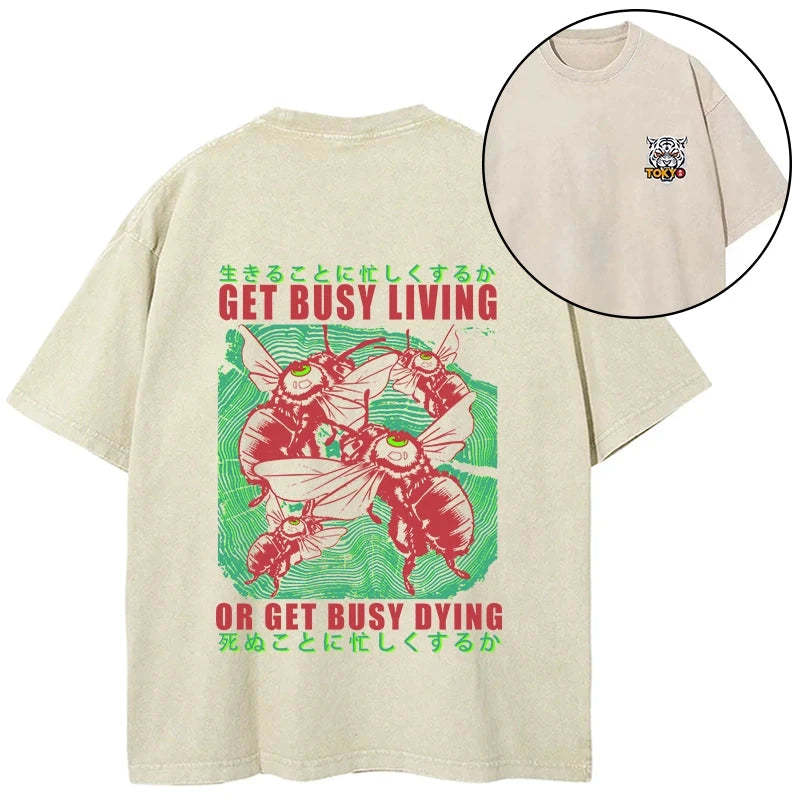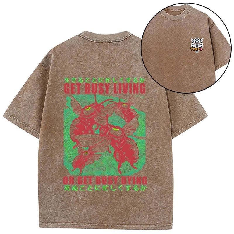 Tokyo-Tiger Busy Bee Japanese Front Back Washed T-Shirt