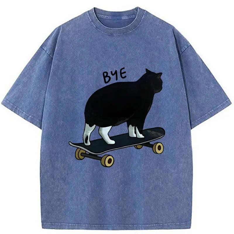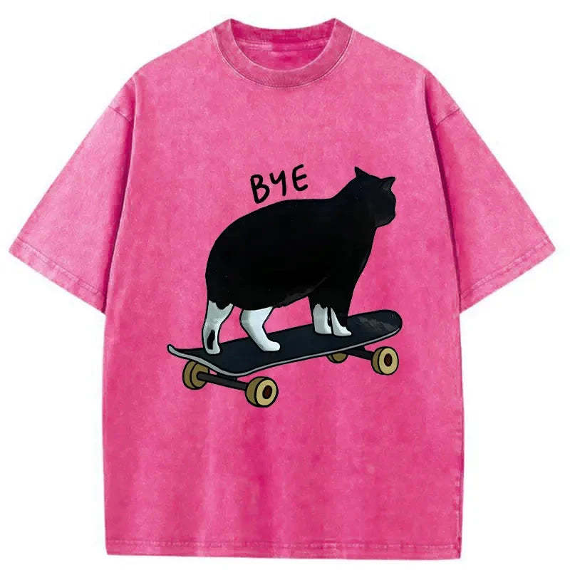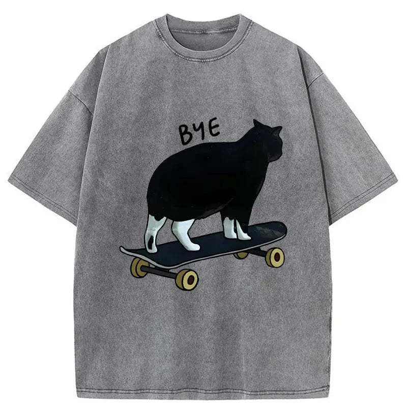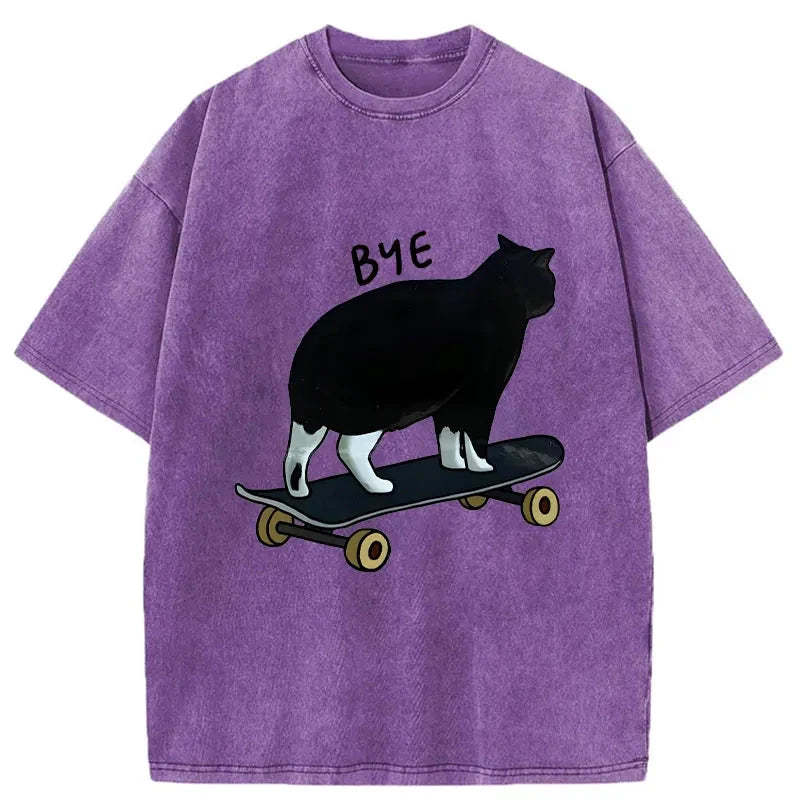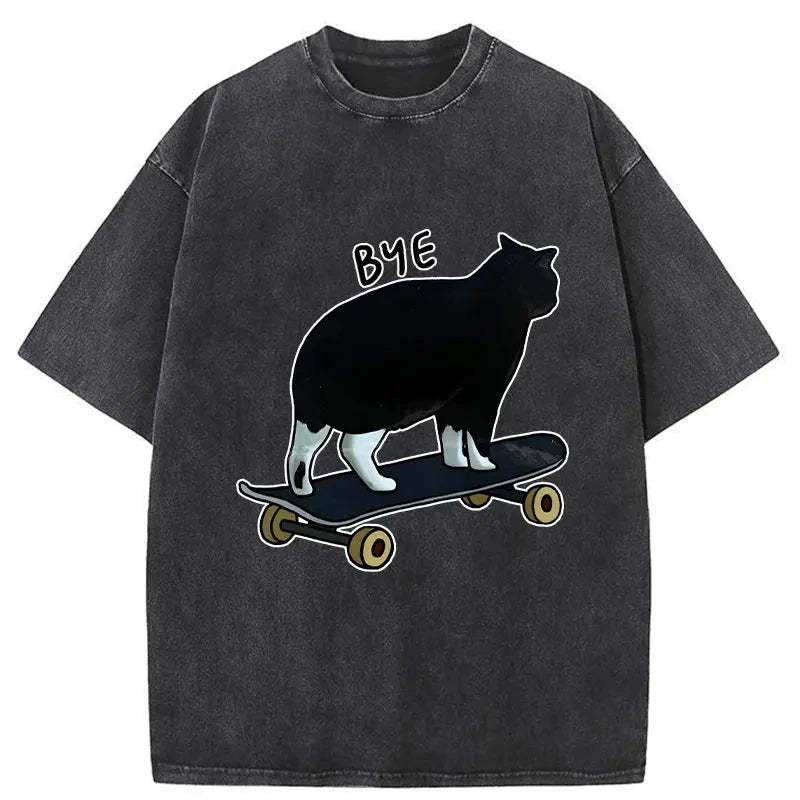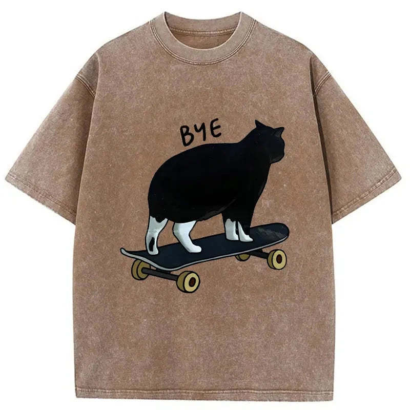 Tokyo-Tiger Cat On Skateboard Washed T-Shirt