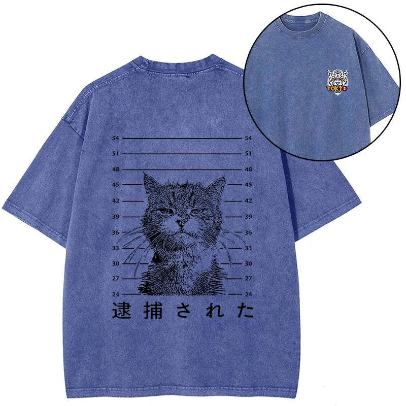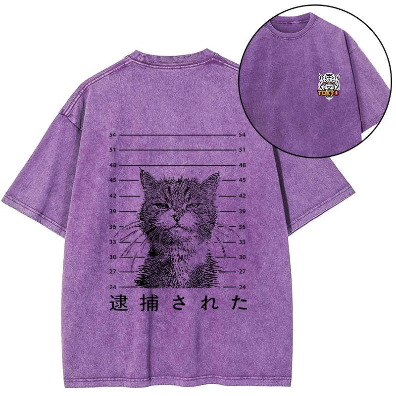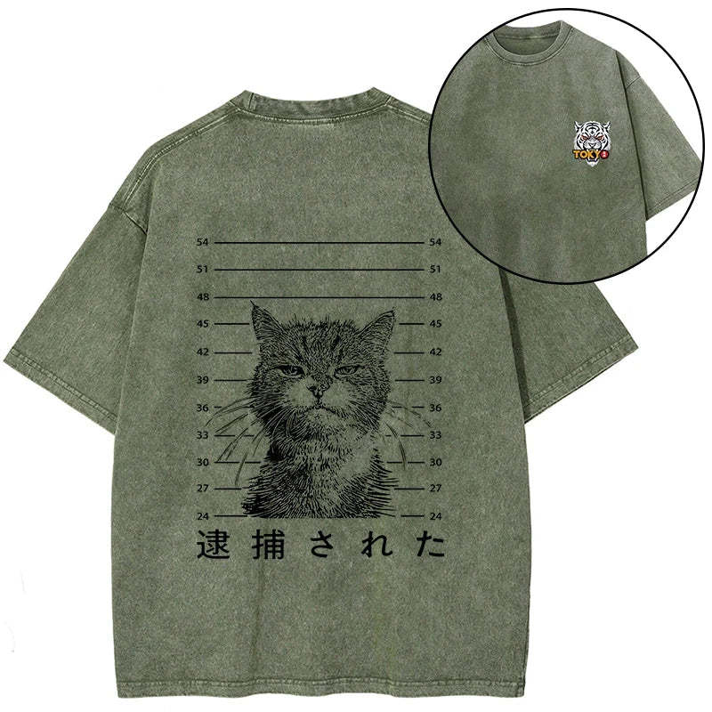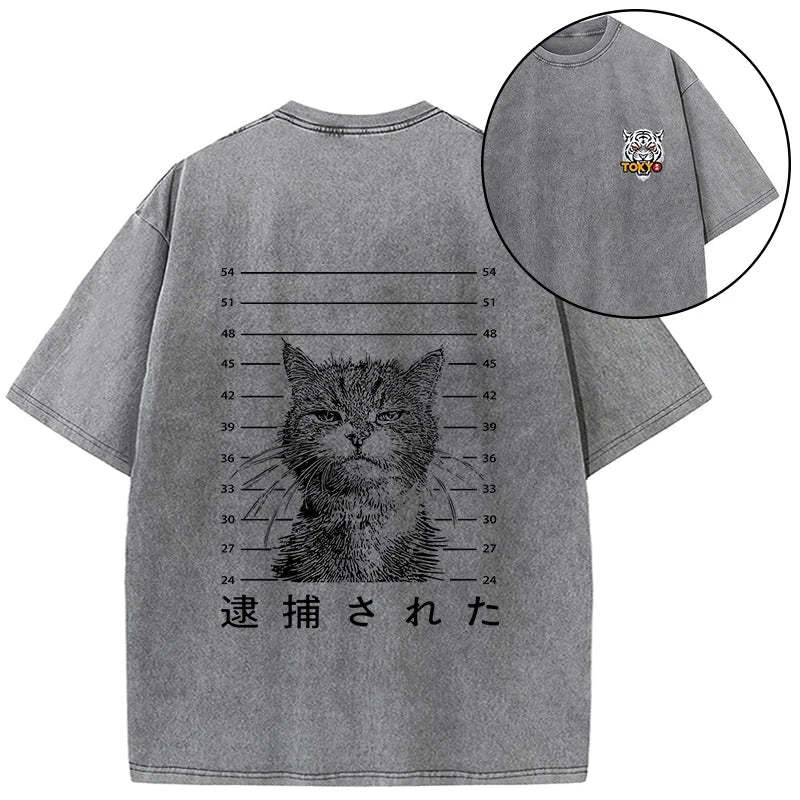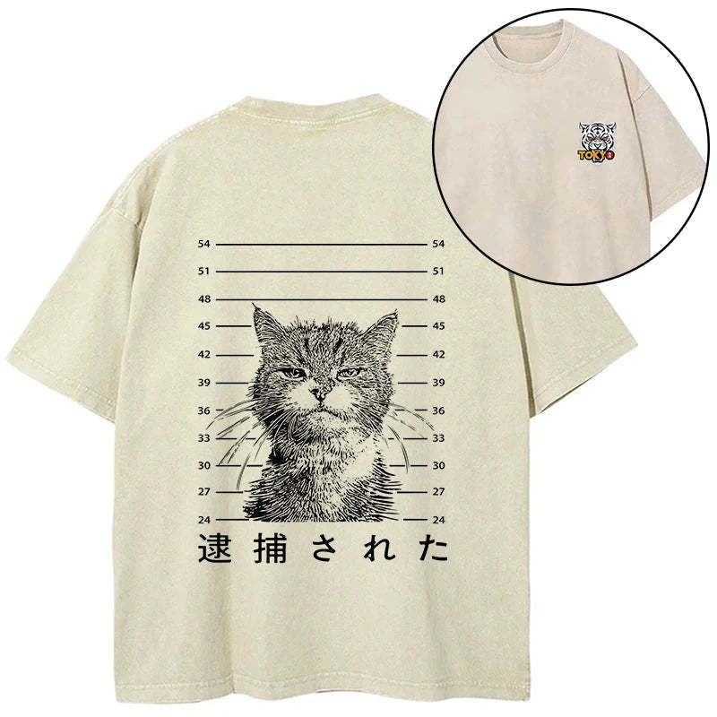 Tokyo-Tiger Cat That Was Arrested Front Back Washed T-Shirt