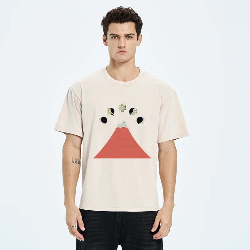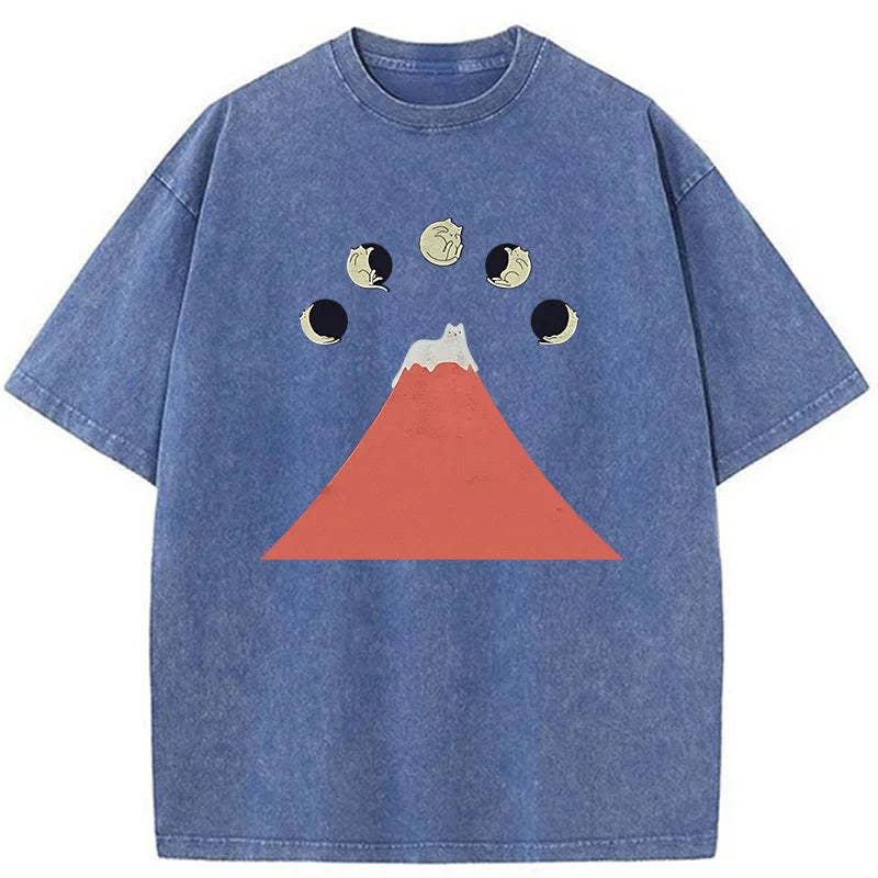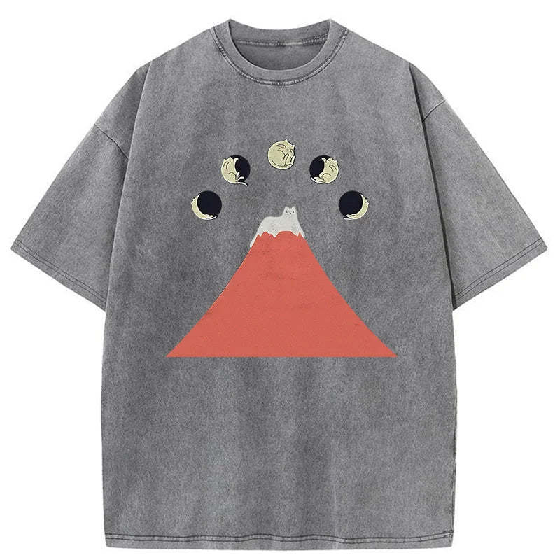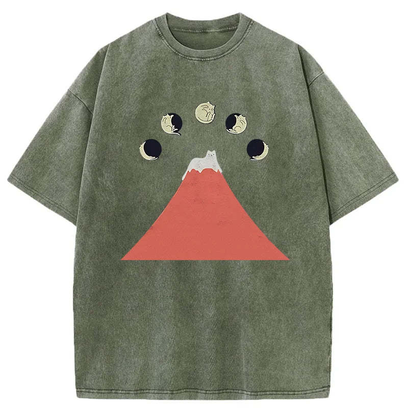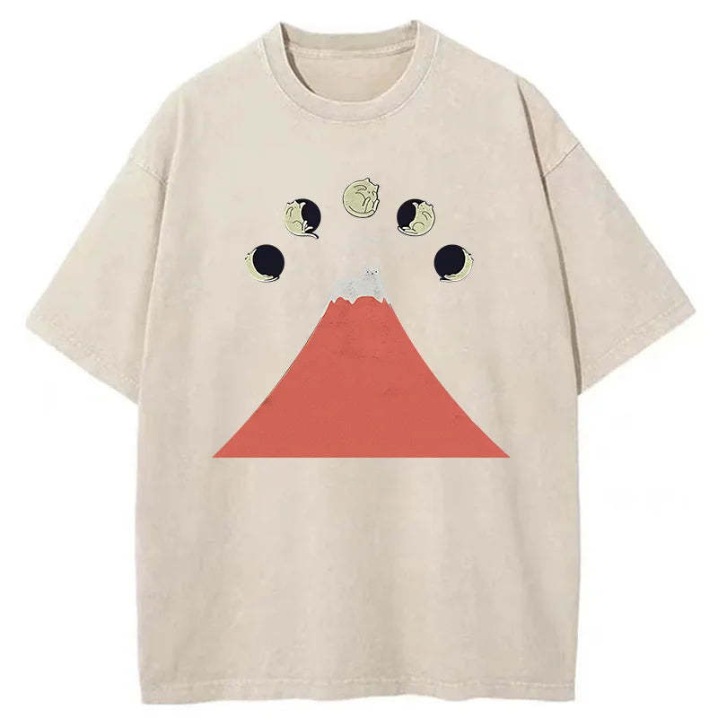 Tokyo-Tiger Cat Version Of Mount Fuji Washed T-Shirt