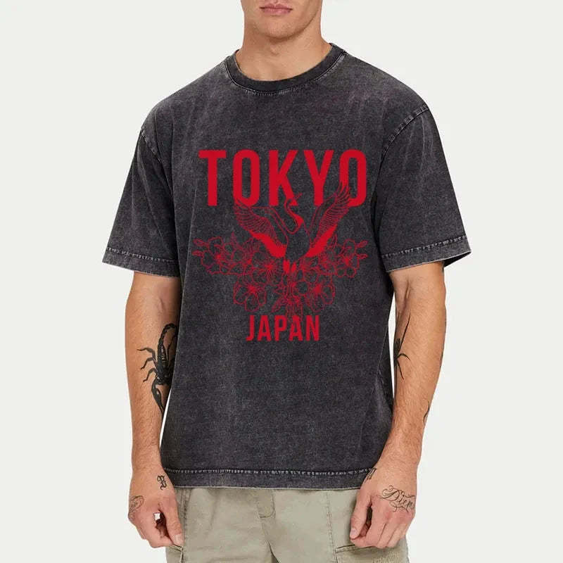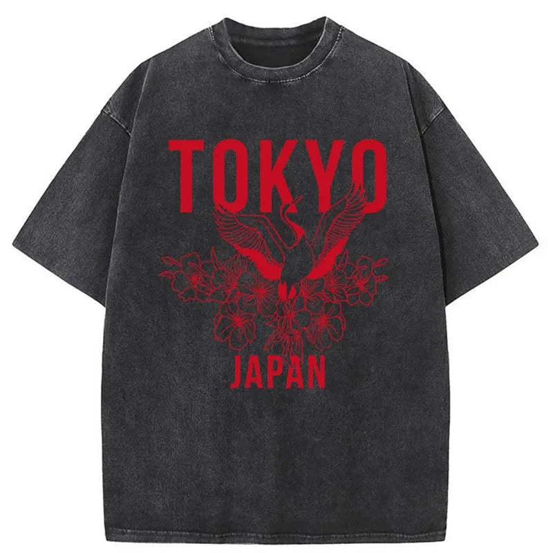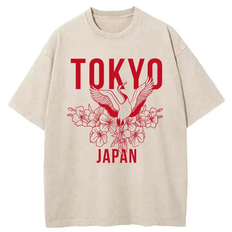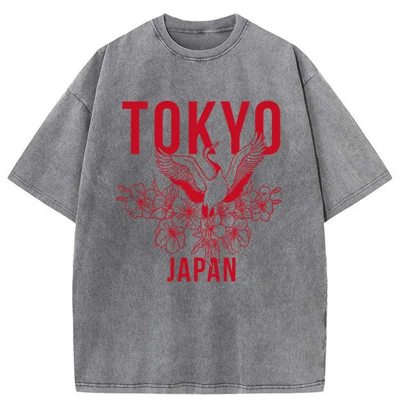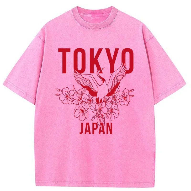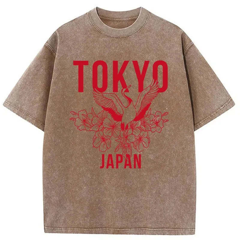 Tokyo-Tiger Crane Tokyo Japan Sakura Washed T-Shirt