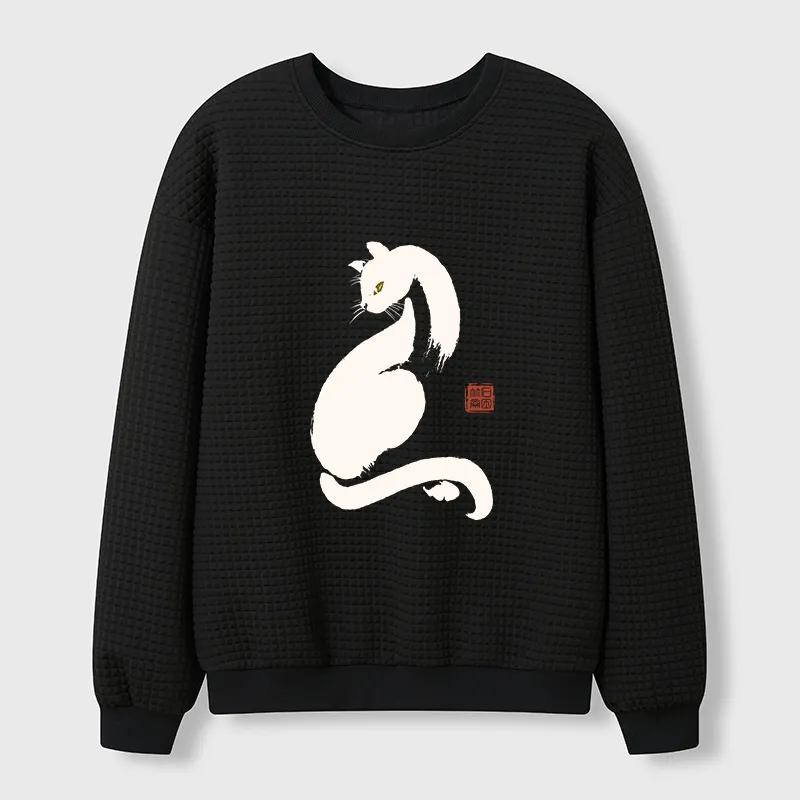 Tokyo-Tiger Elegant Black Cat Japan Waffle Sweatshirt
