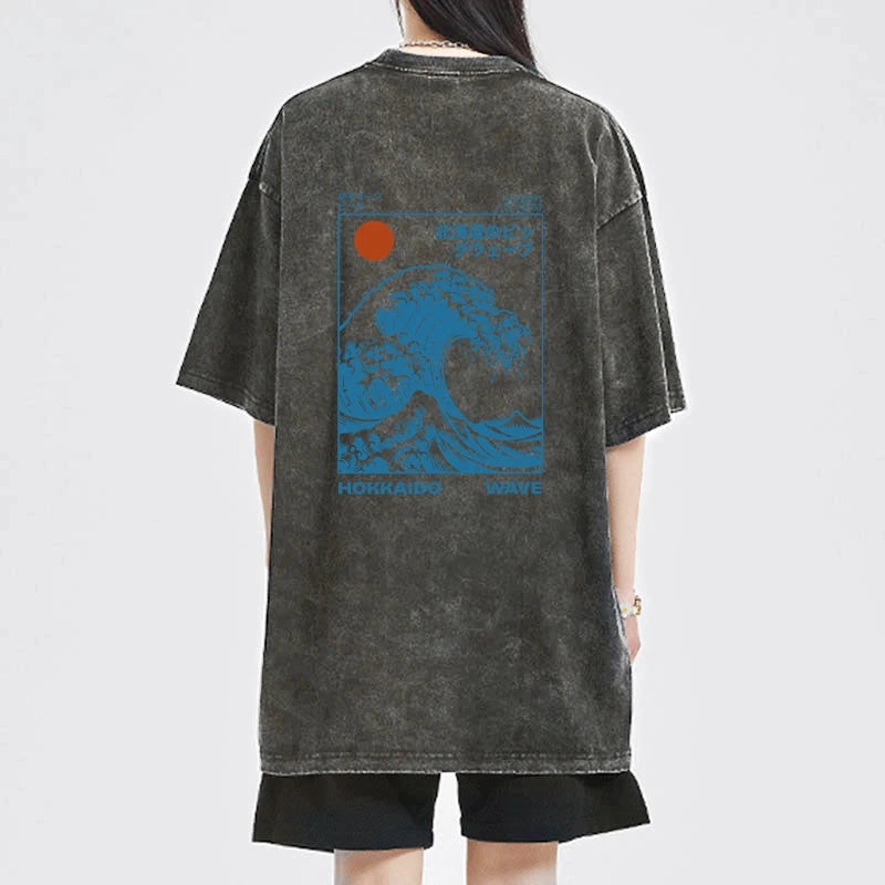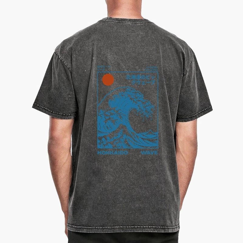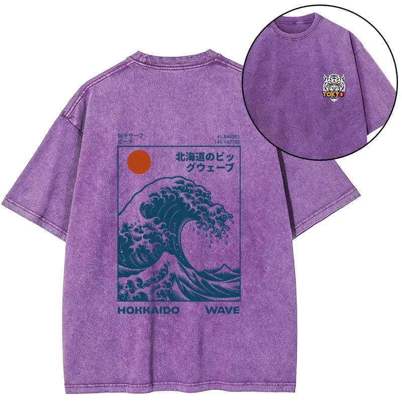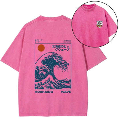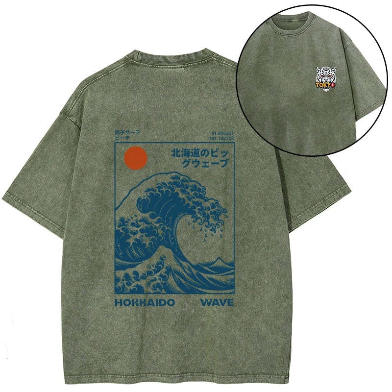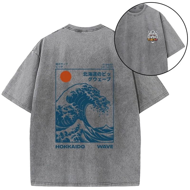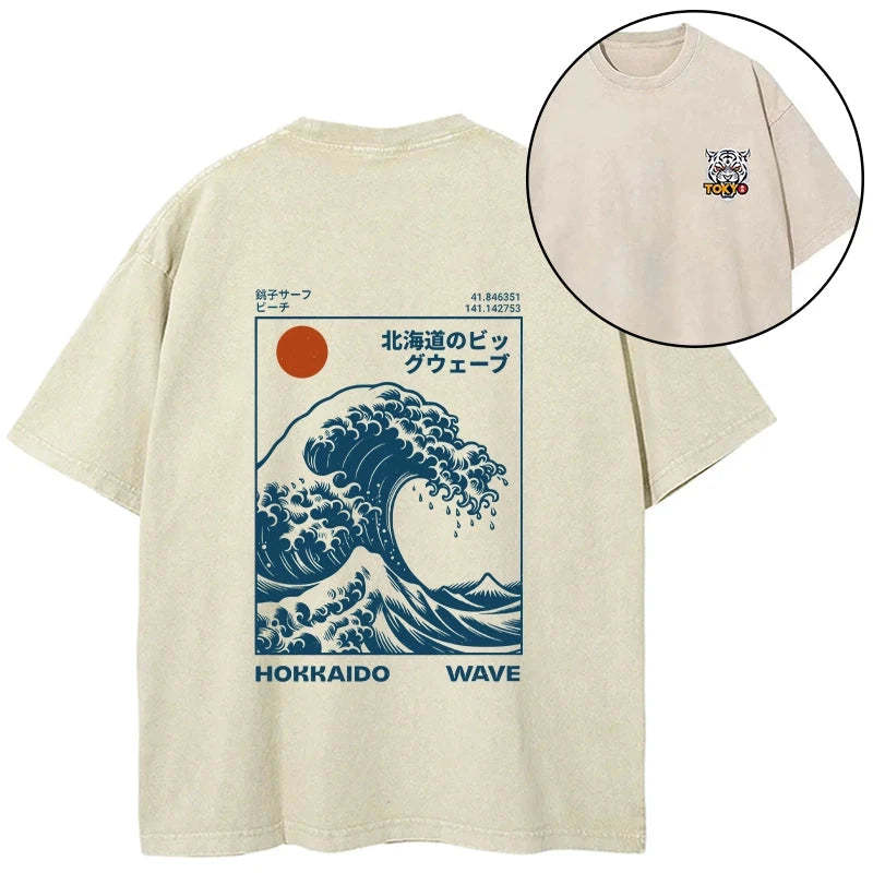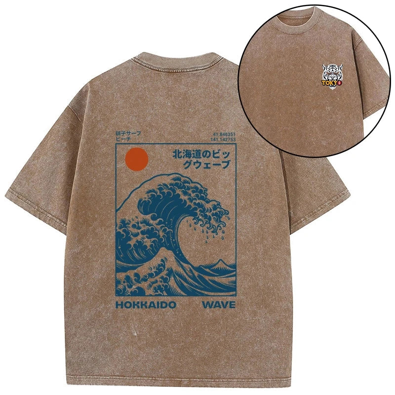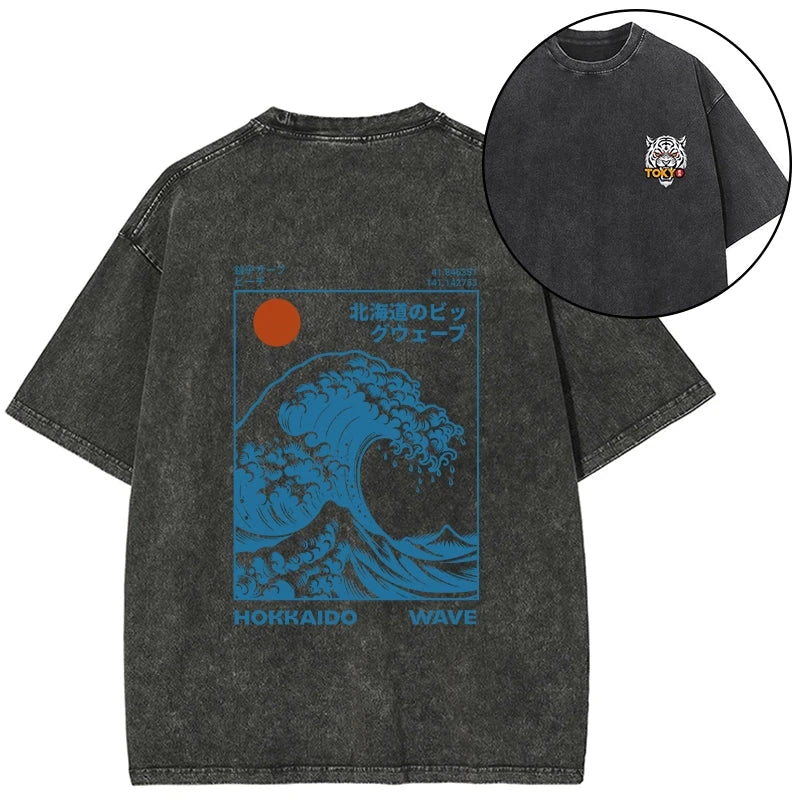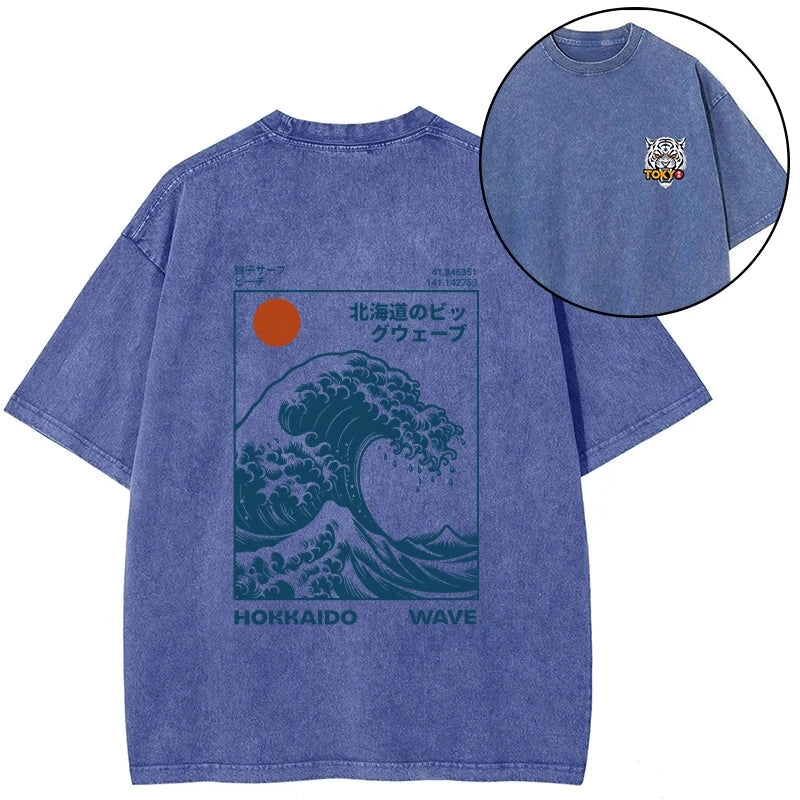 Tokyo-Tiger Hokkaido Wave Japan Front Back Washed T-Shirt