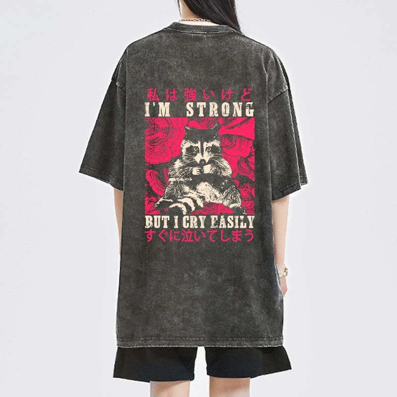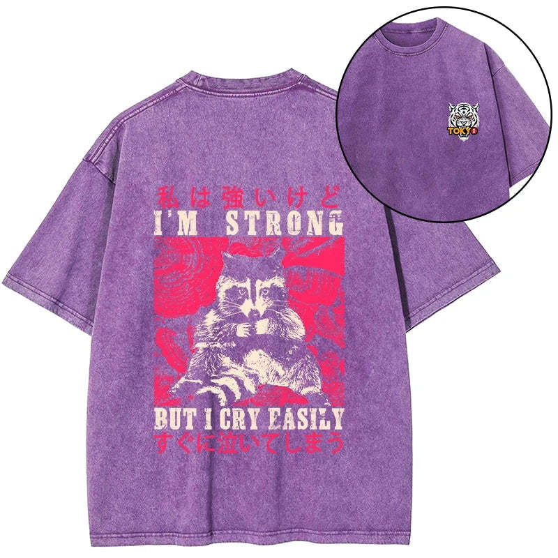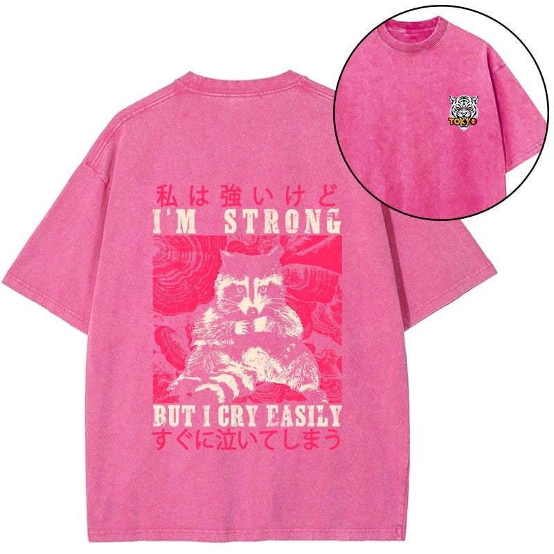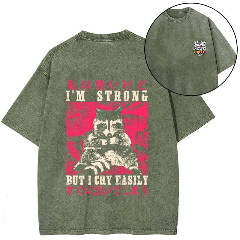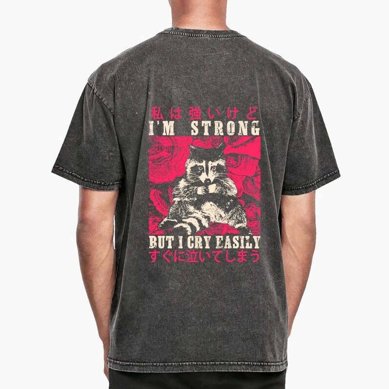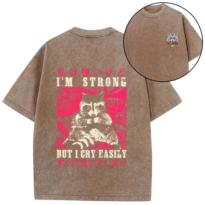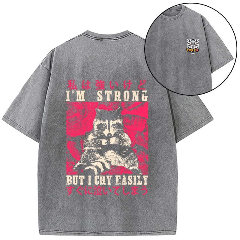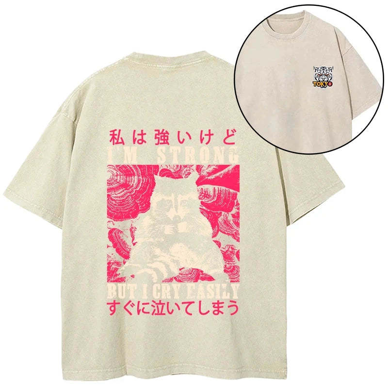 Tokyo-Tiger I Am Strong Raccoon Front Back Washed T-Shirt