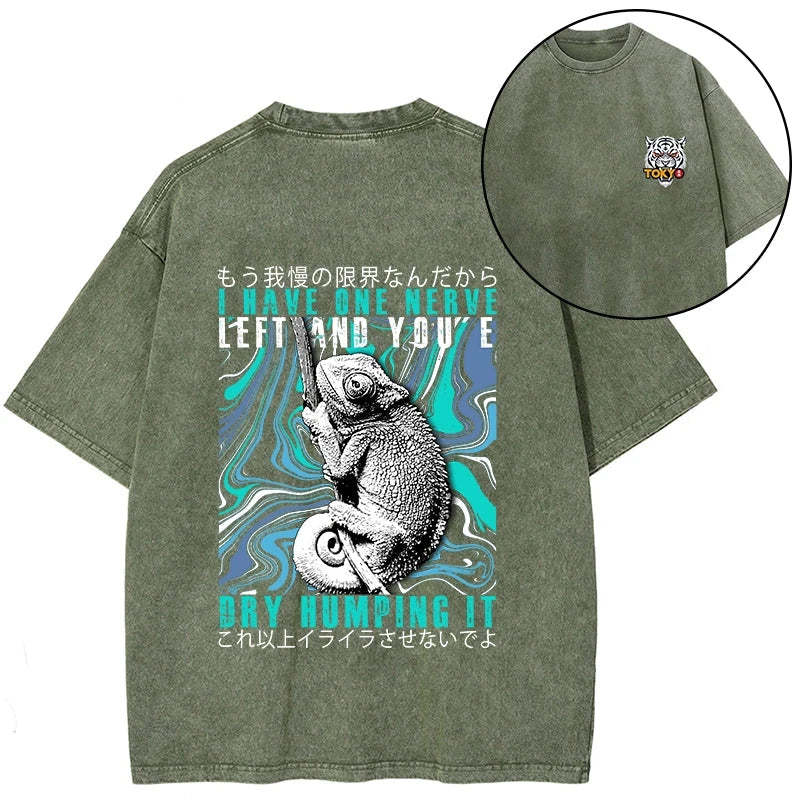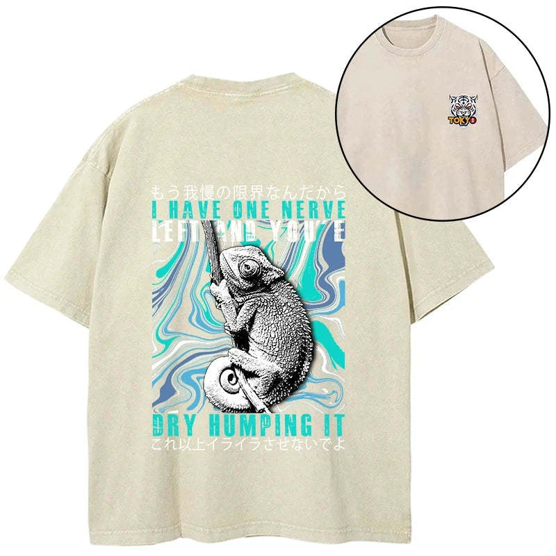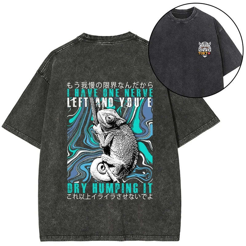 Tokyo-Tiger I Have One Nerve Chameleon Front Back Washed T-Shirt