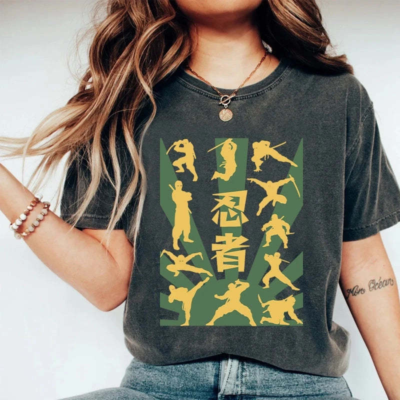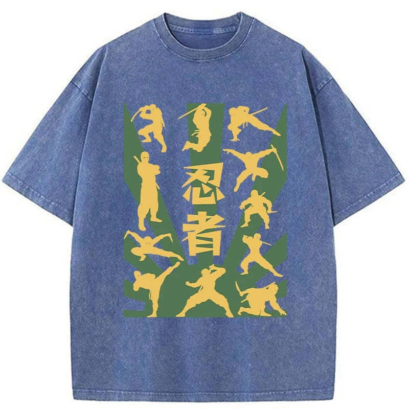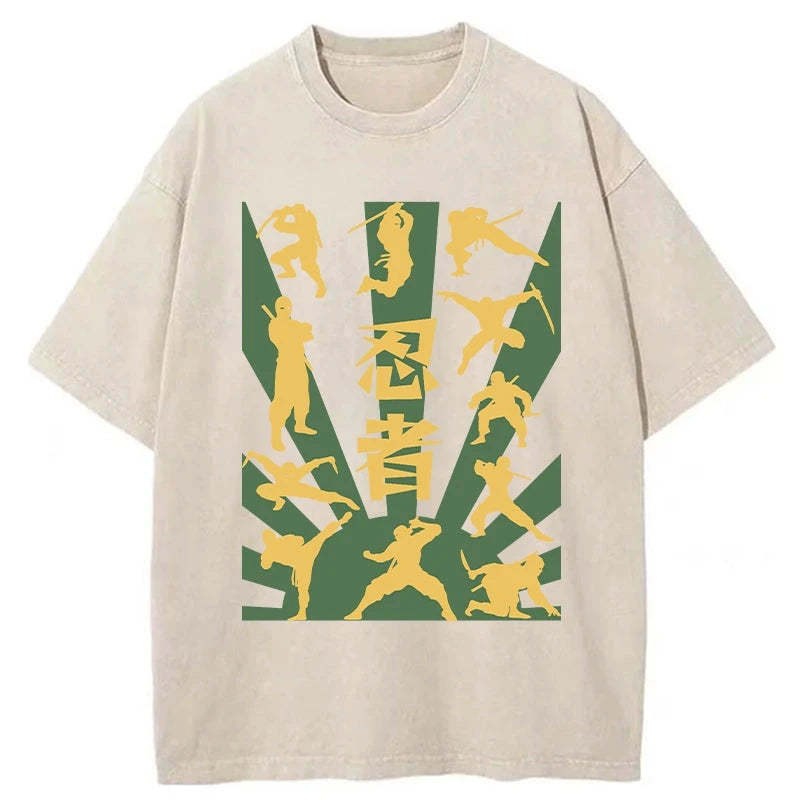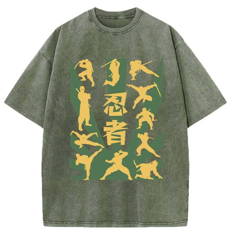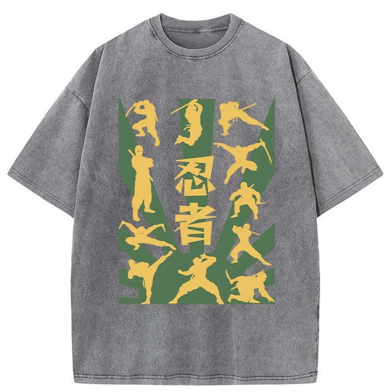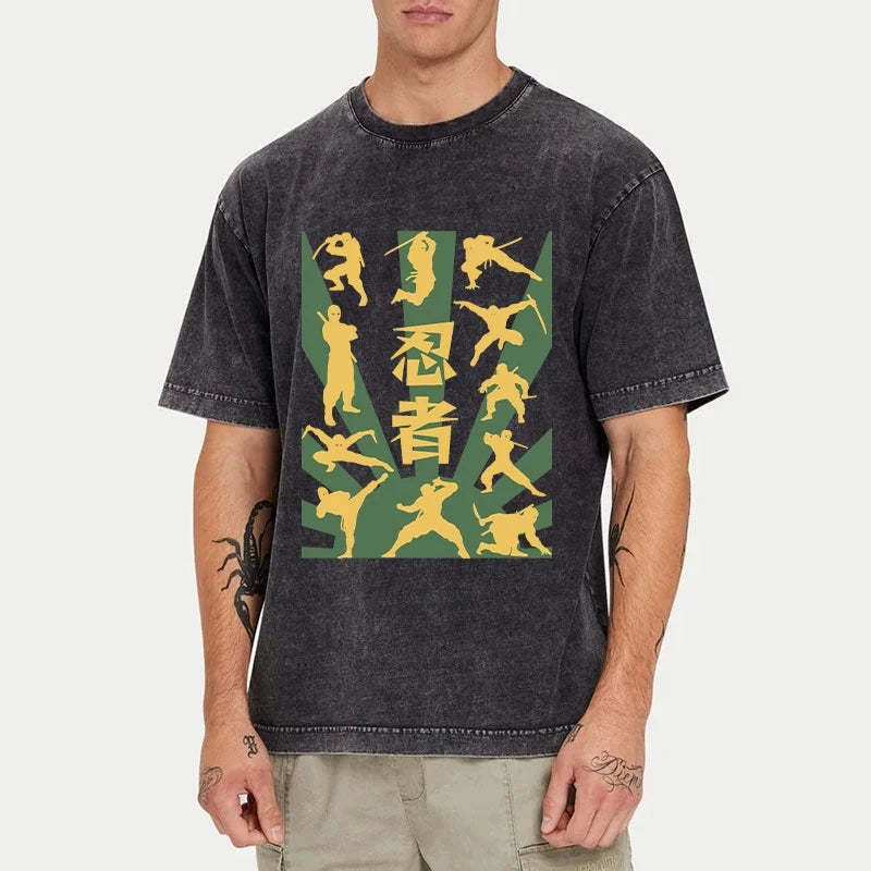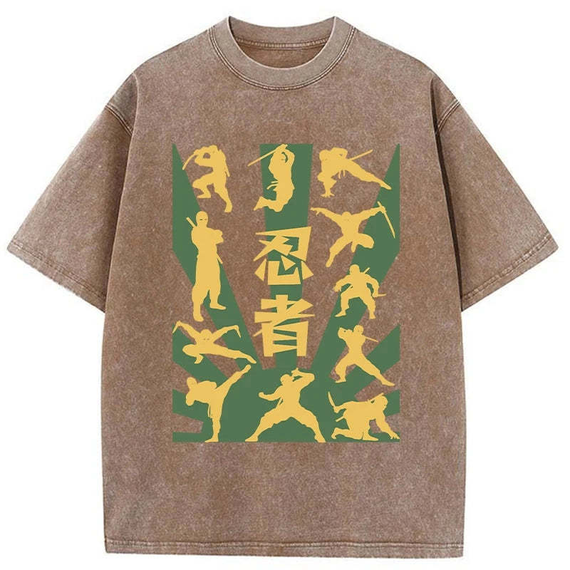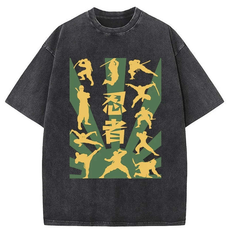 Tokyo-Tiger Japanese Ninja Print Washed T-Shirt