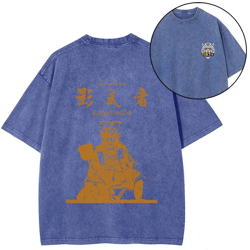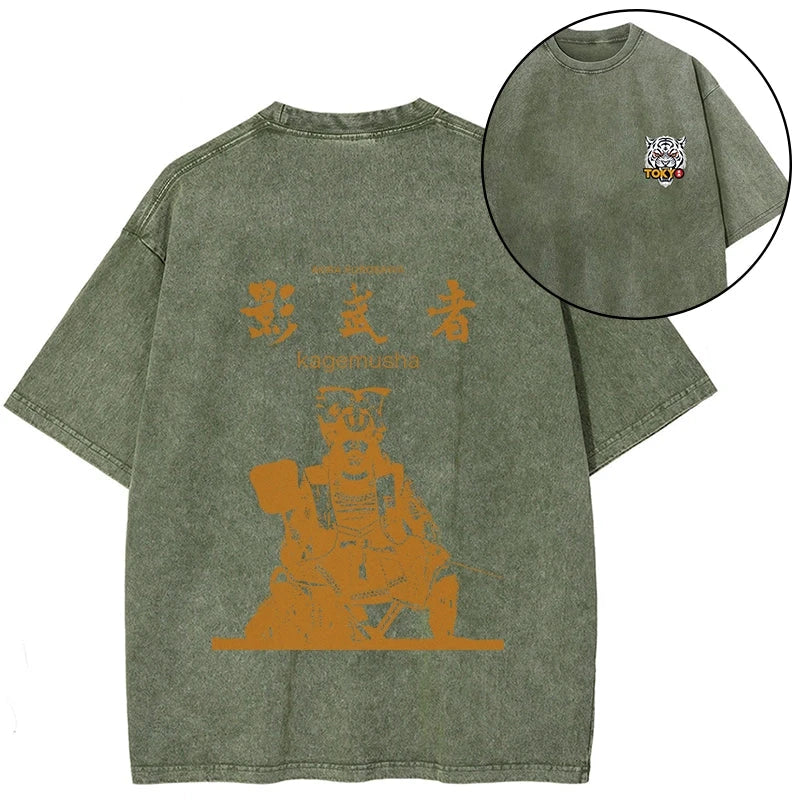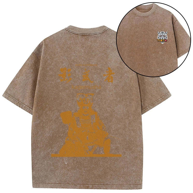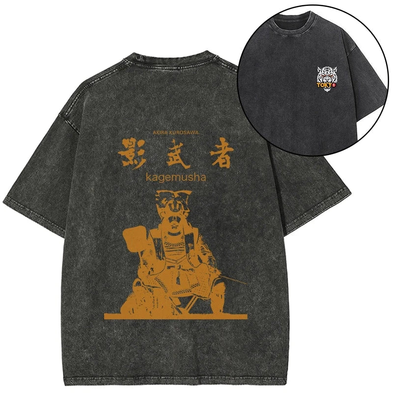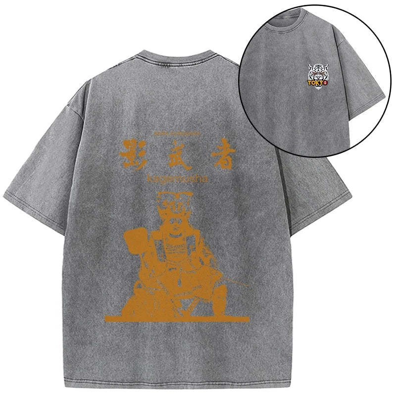 Tokyo-Tiger Japanese Shadow Samurai Front Back Washed T-Shirt