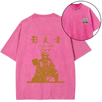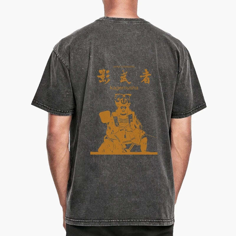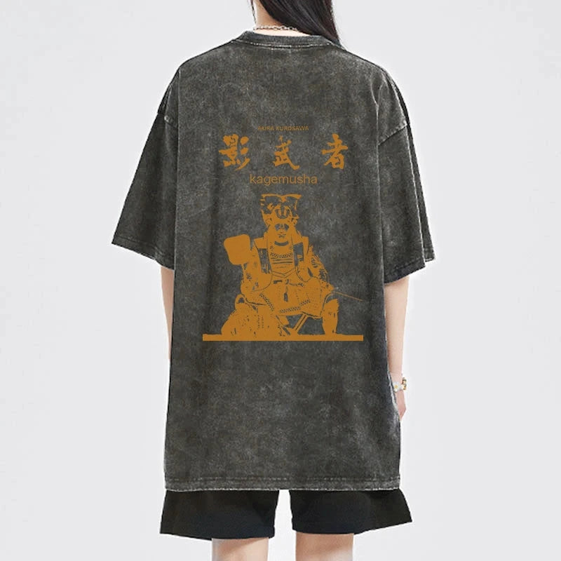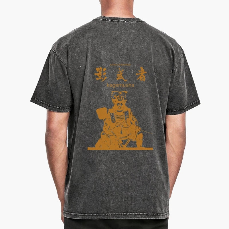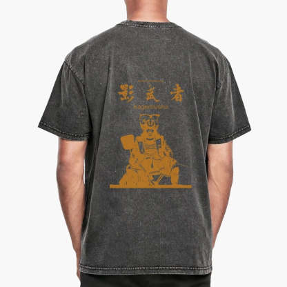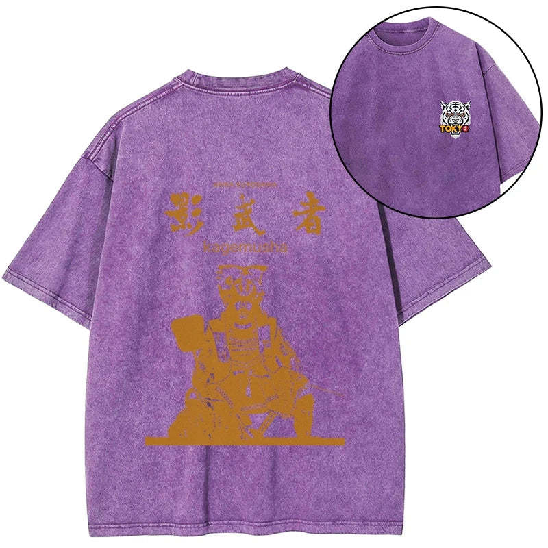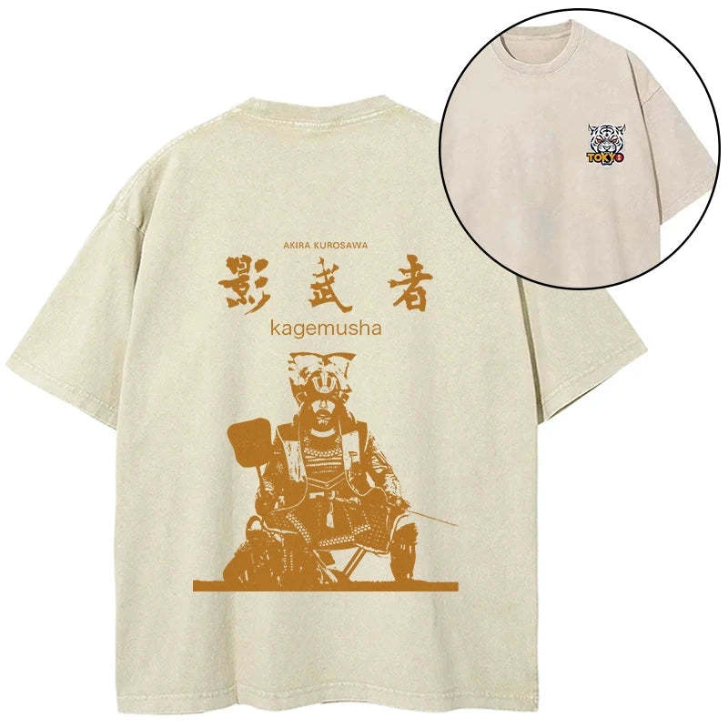Tokyo-Tiger Japanese Shadow Samurai Front Back Washed T-Shirt