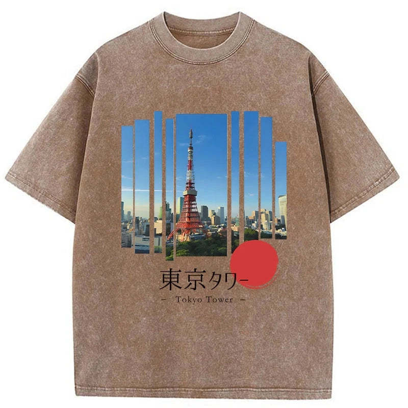 Tokyo-Tiger Japanese Tokyo Tower Washed T-Shirt