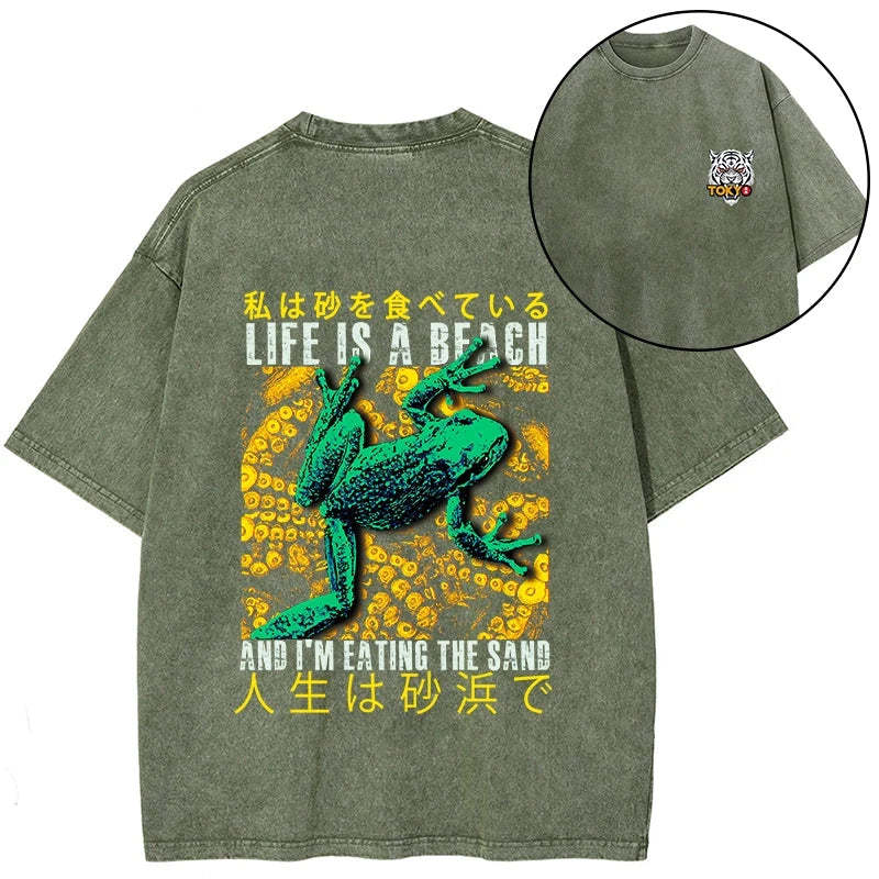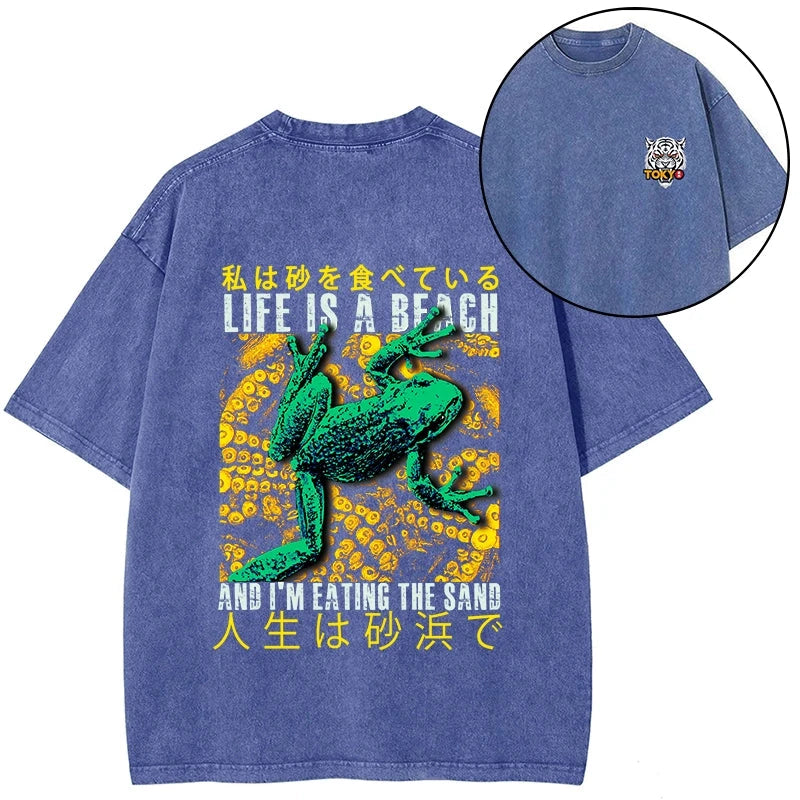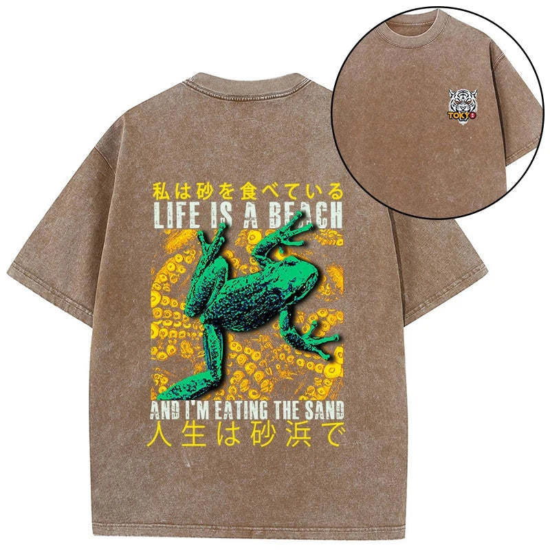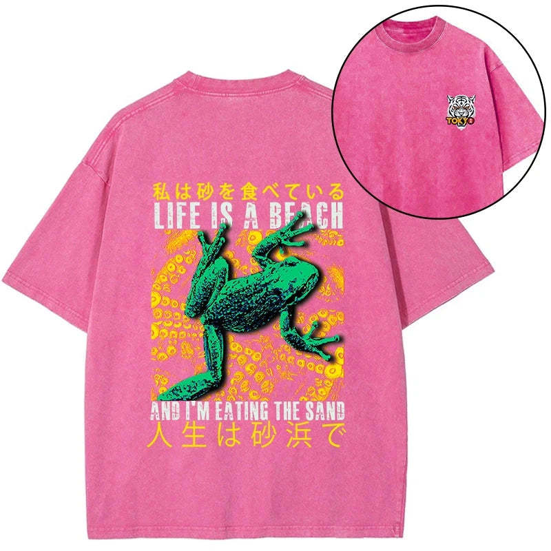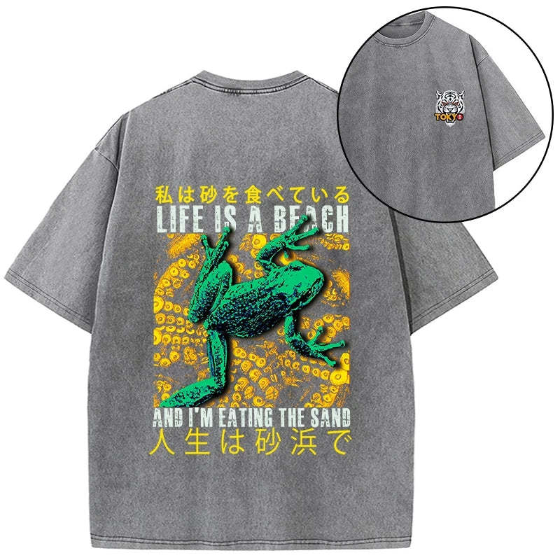 Tokyo-Tiger Life Is A Beach I'M Eating The Sand Front Back Washed T-Shirt