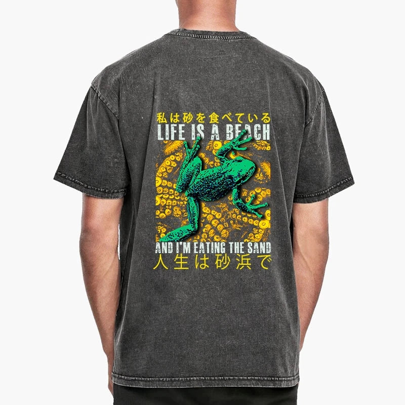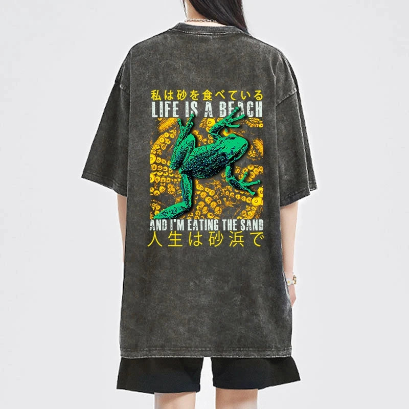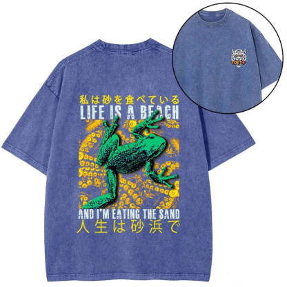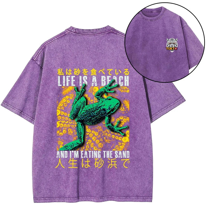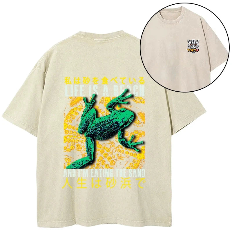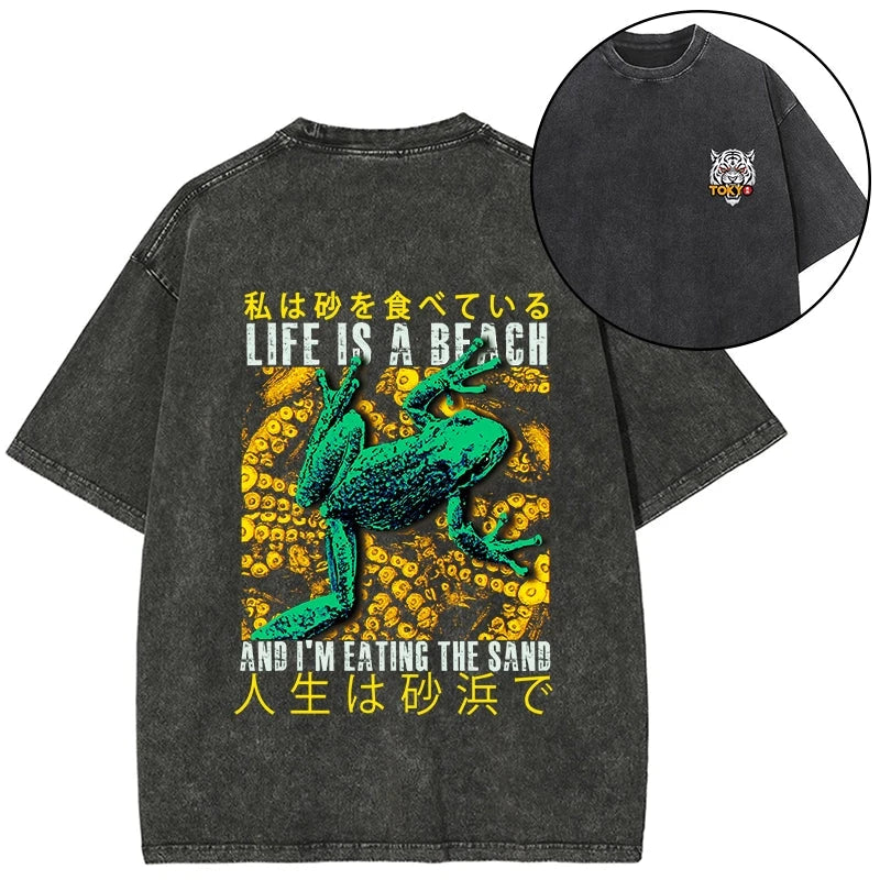 Tokyo-Tiger Life Is A Beach I'M Eating The Sand Front Back Washed T-Shirt