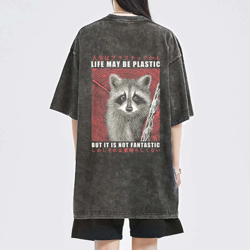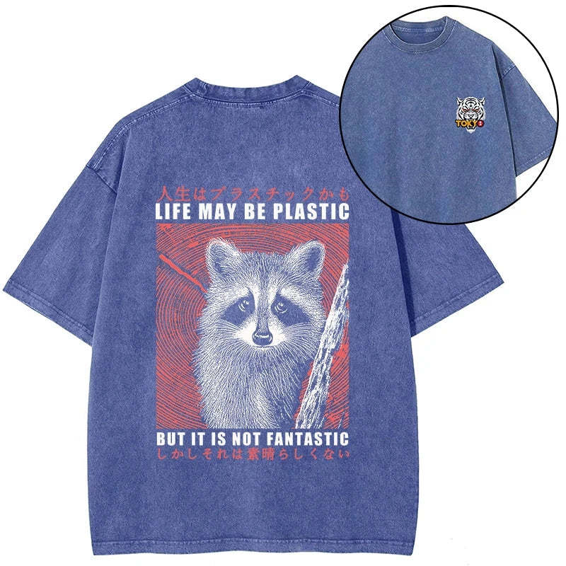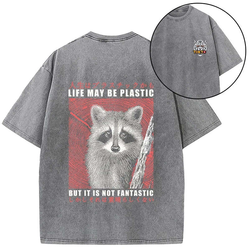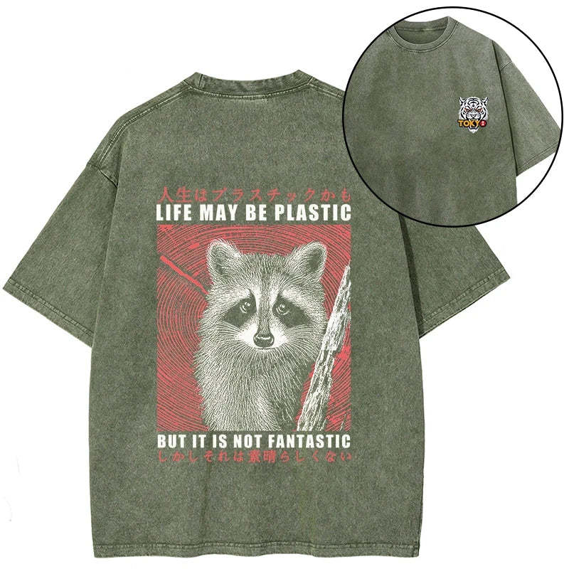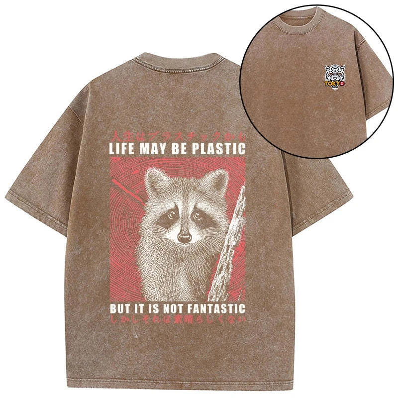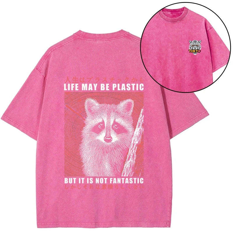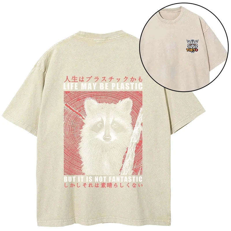Tokyo-Tiger Life May Be Plastic But It Is Not Fantastic Front Back Washed T-Shirt