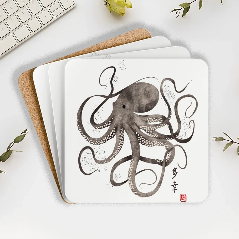 Tokyo-Tiger Octopus Japanese Calligraphy Coaster