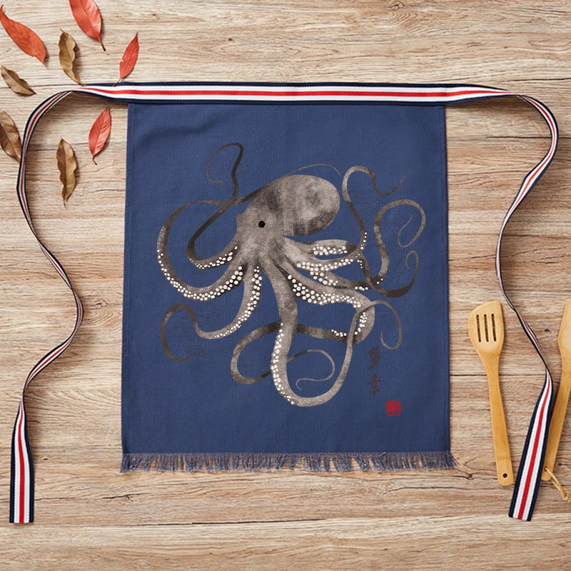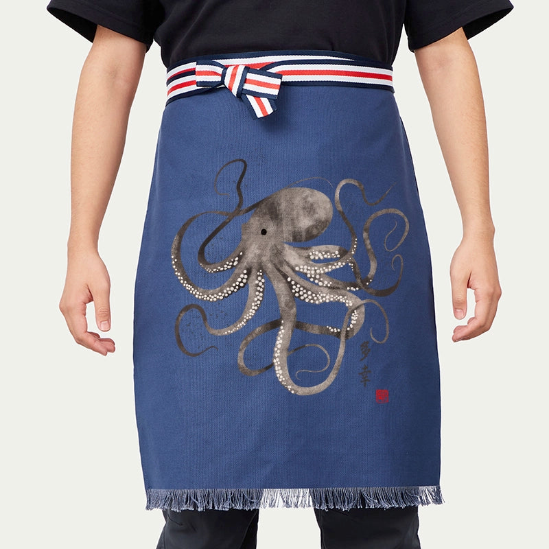 Tokyo-Tiger Octopus Japanese Calligraphy Half Apron