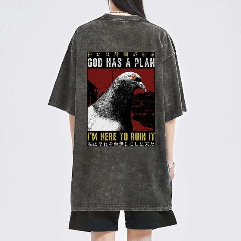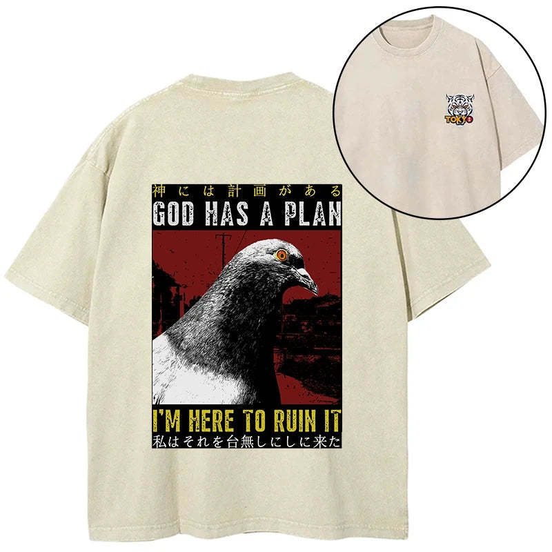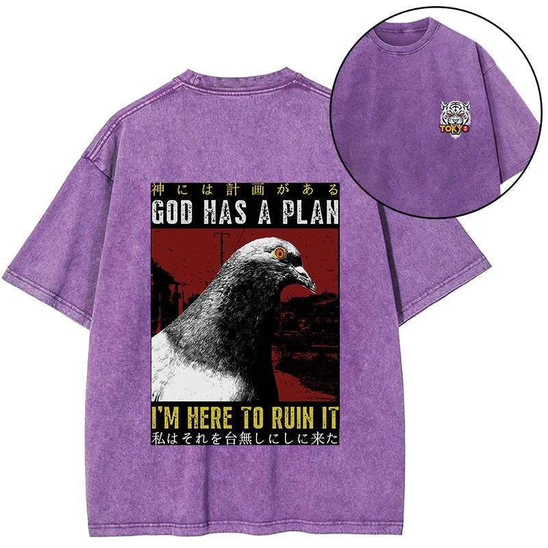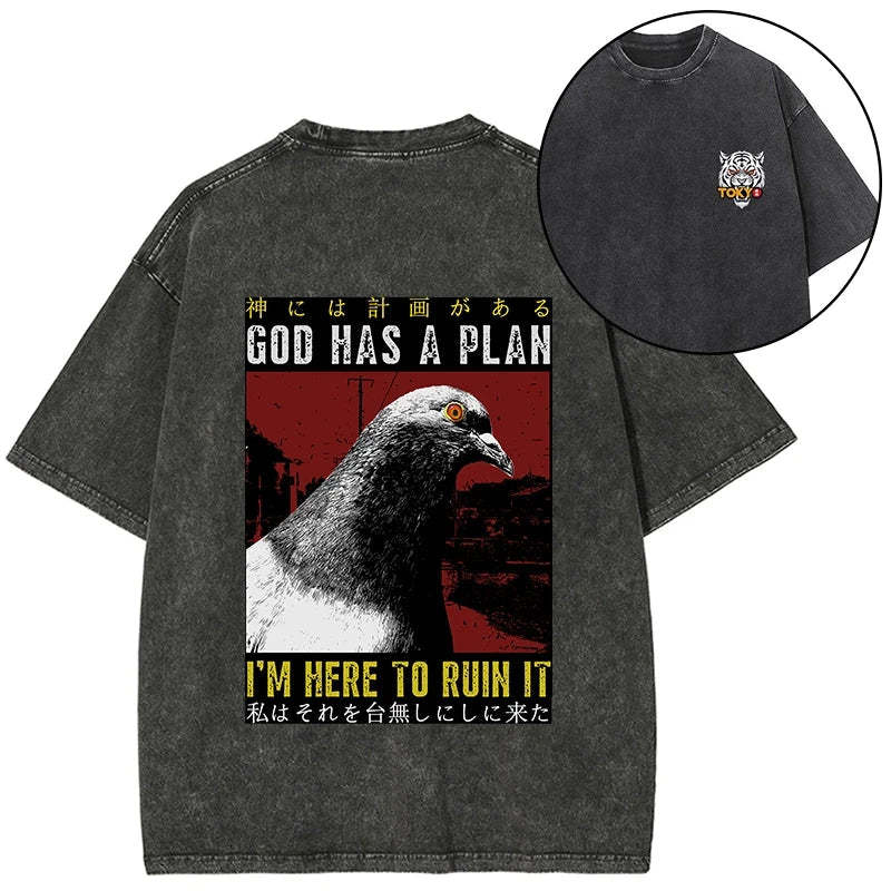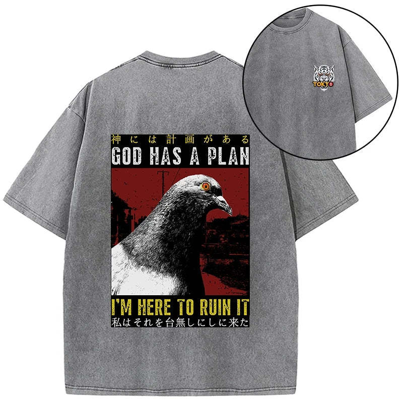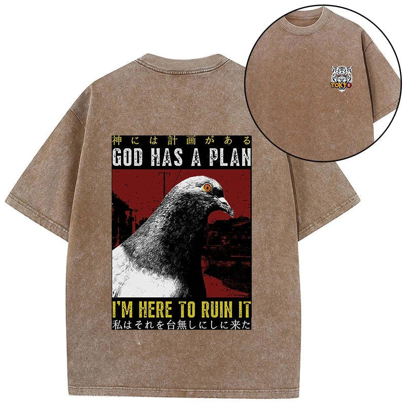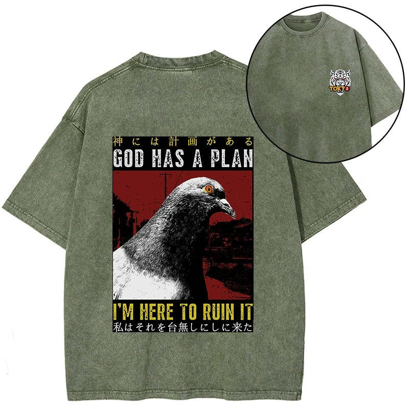 Tokyo-Tiger Pigeons That Want To Break The Plan Front Back Washed T-Shirt
