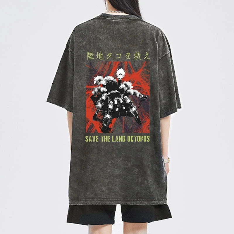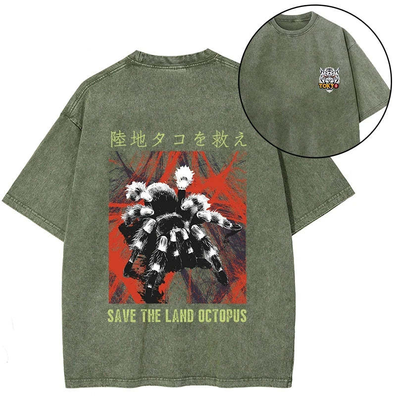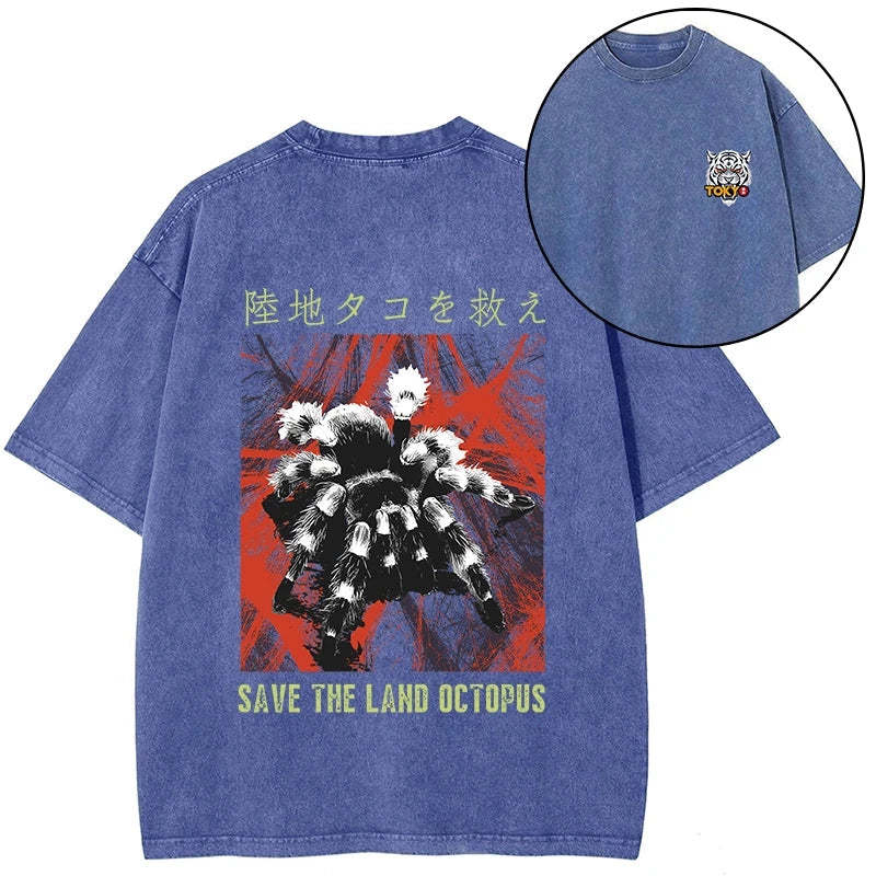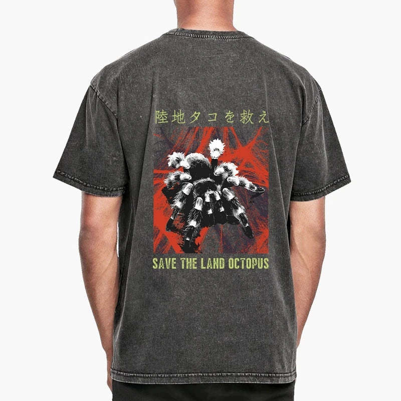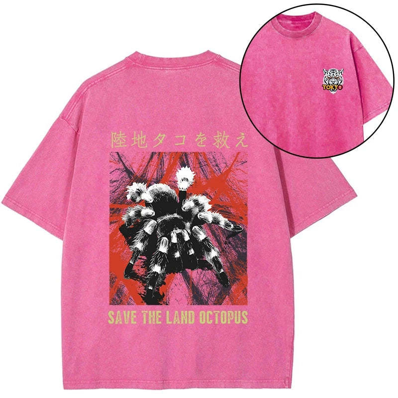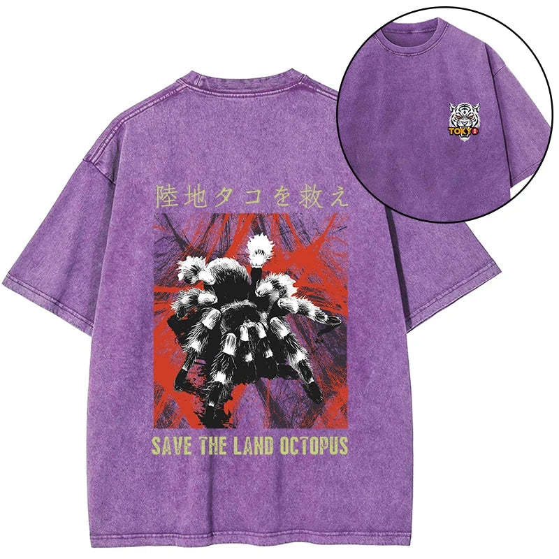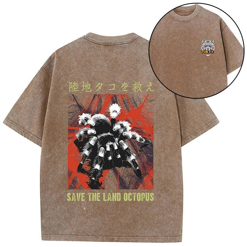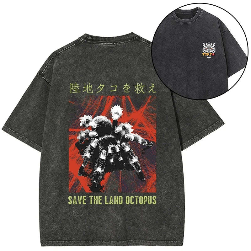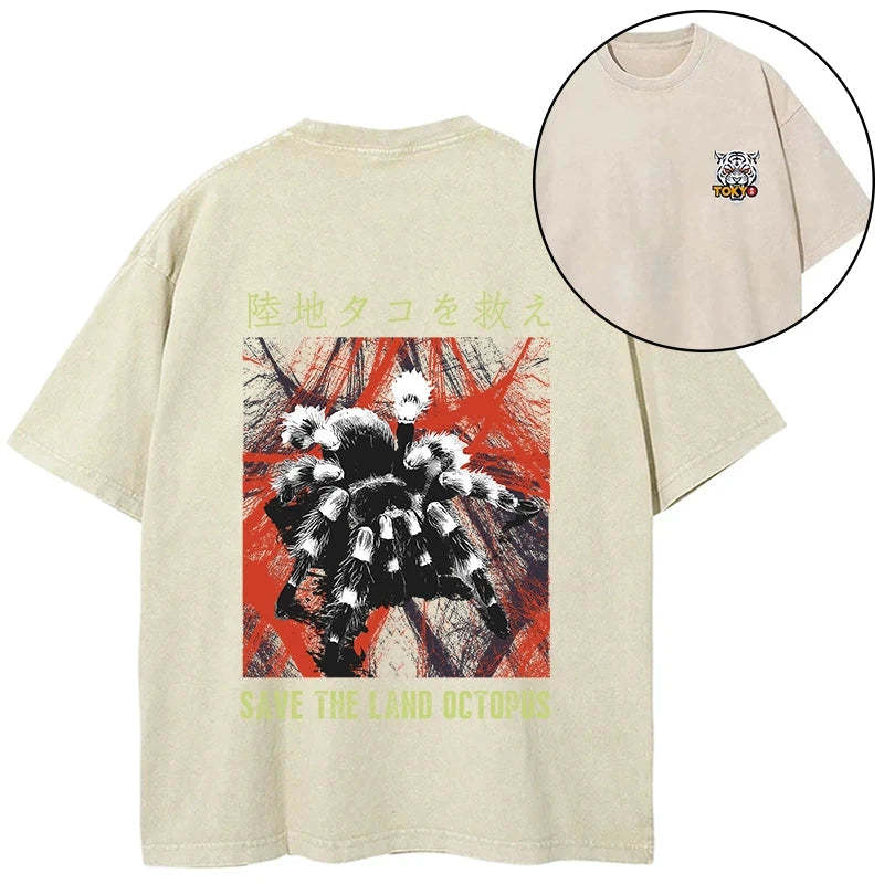 Tokyo-Tiger Real Scary Spiders Front Back Washed T-Shirt