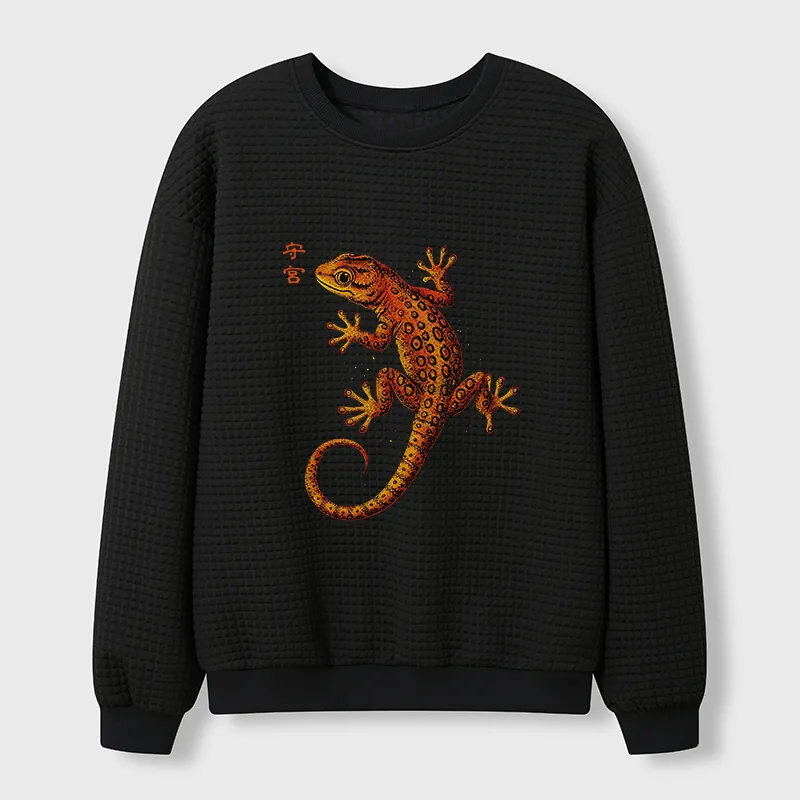 Tokyo-Tiger Retro Gecko Funny Waffle Sweatshirt