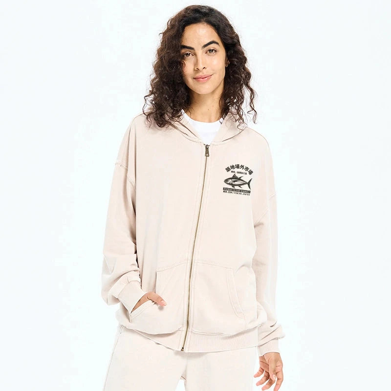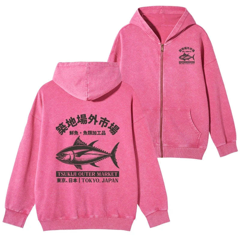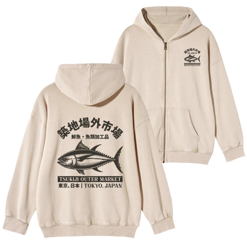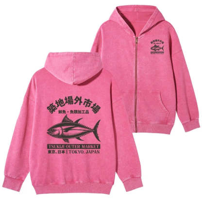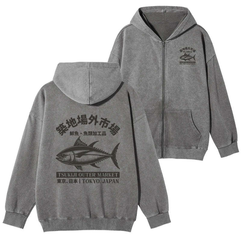 Tokyo-Tiger Sakana Tsukiji Fish Market Washed Zip Hoodie