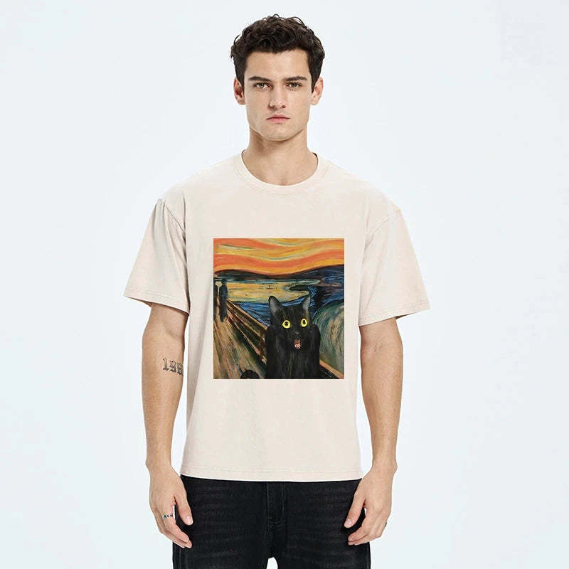 Tokyo-Tiger Screaming Black Cat Washed T-Shirt