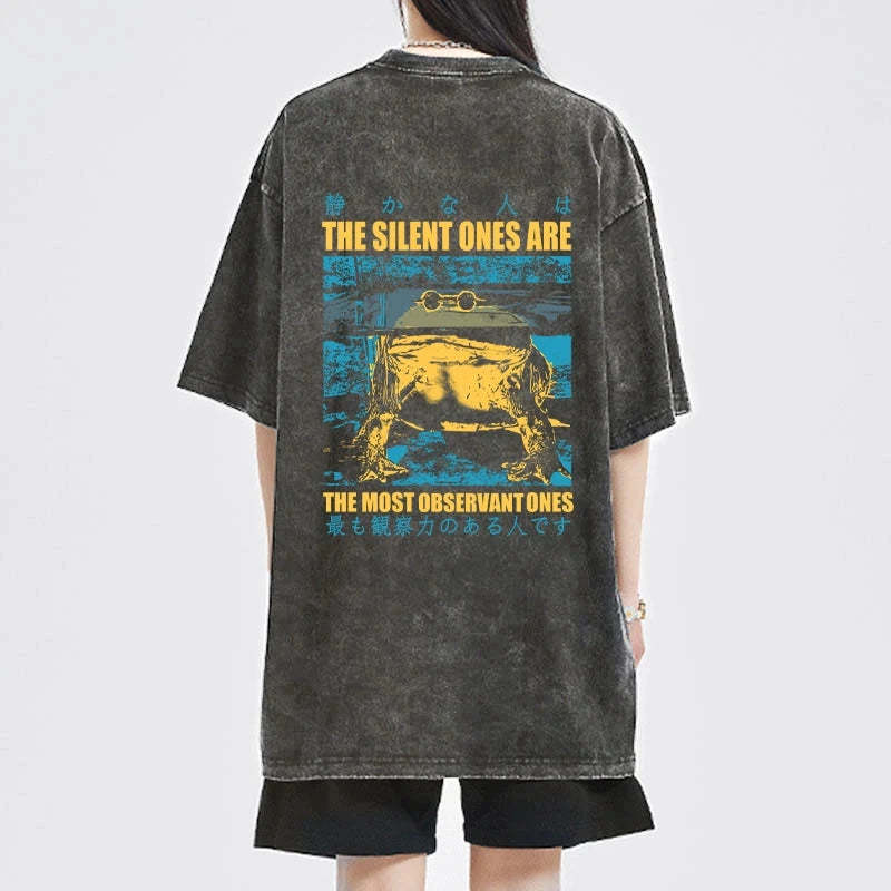 Tokyo-Tiger Silent Frog Japanese Front Back Washed T-Shirt