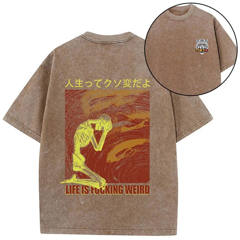 Tokyo-Tiger Skeleton Life is Fu Front Back Washed T-Shirt