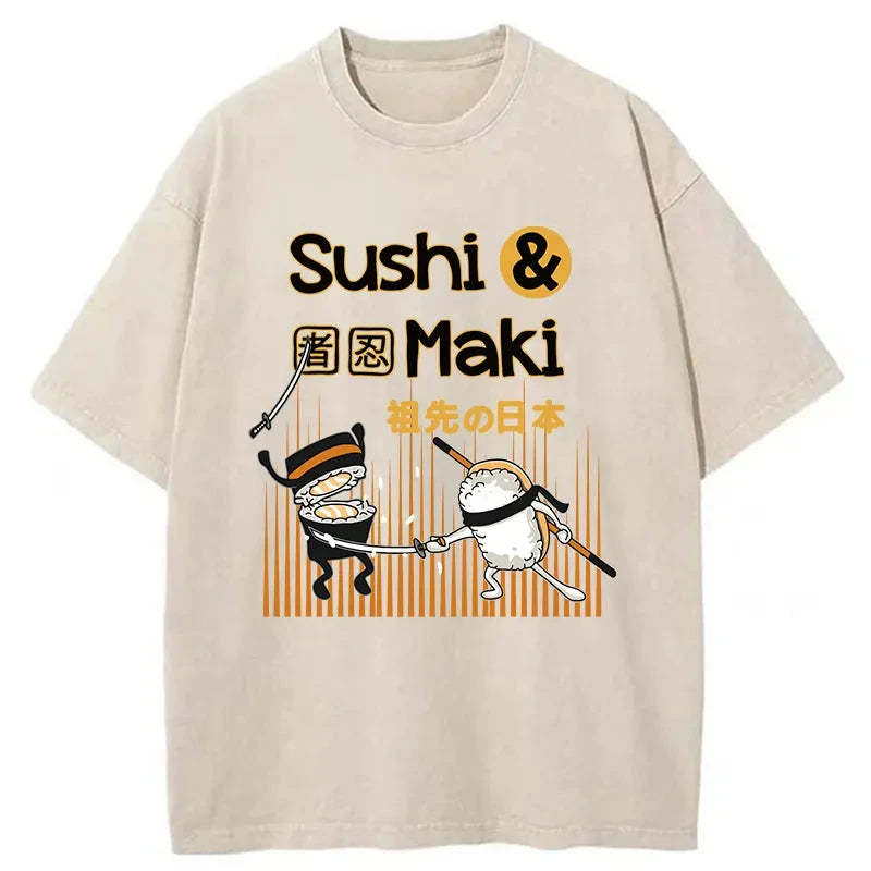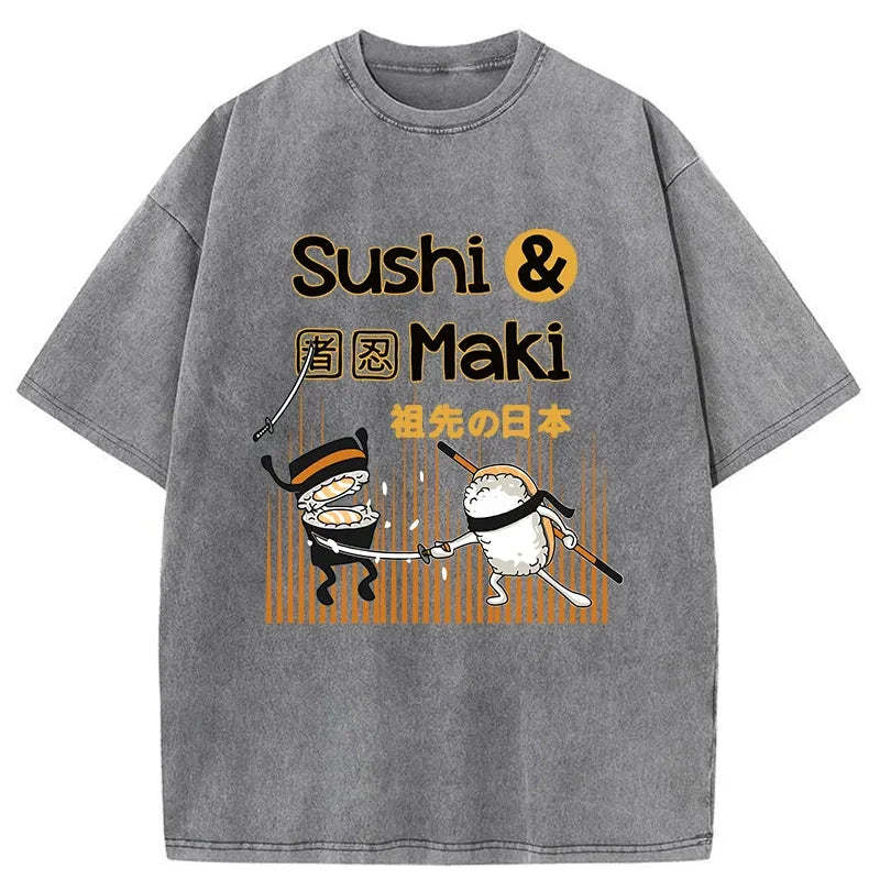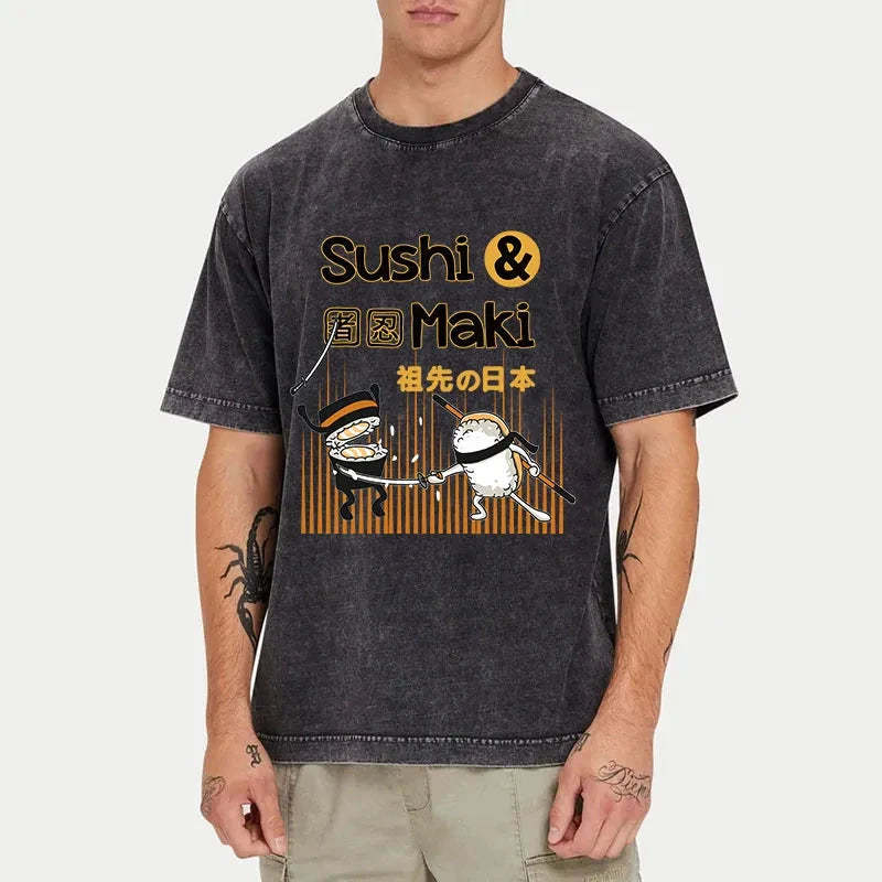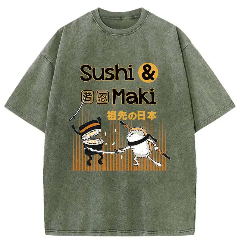 Tokyo-Tiger Sushi Ninja Japanese Washed T-Shirt