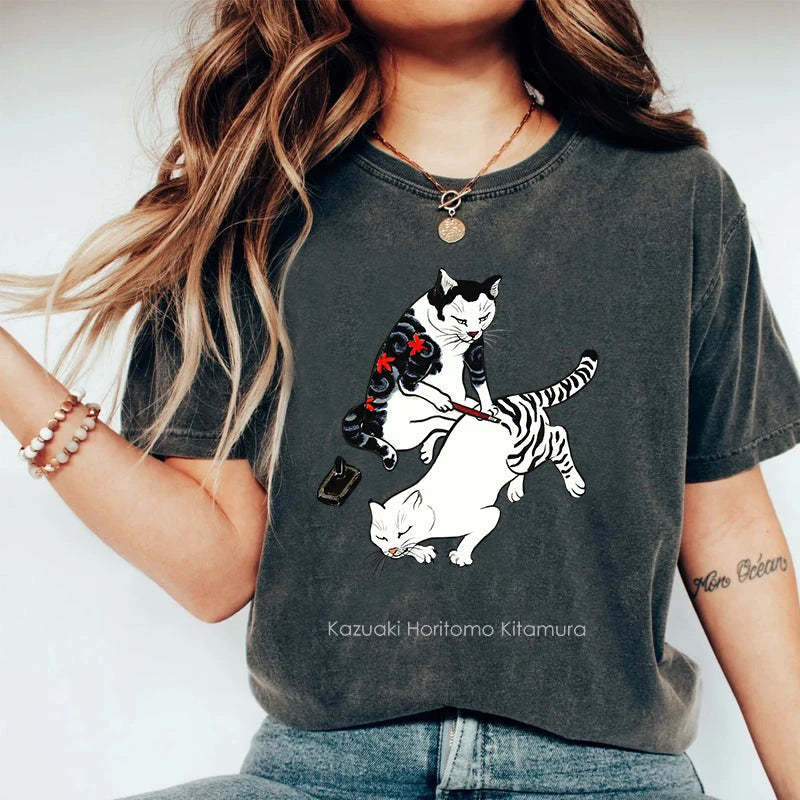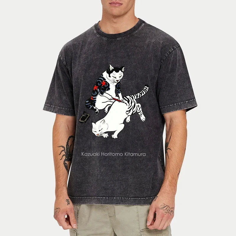Tokyo-Tiger The Cat Is Tattooing Washed T-Shirt