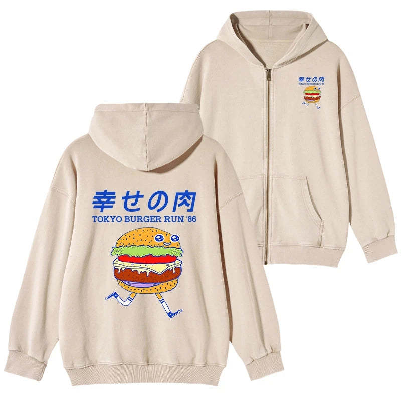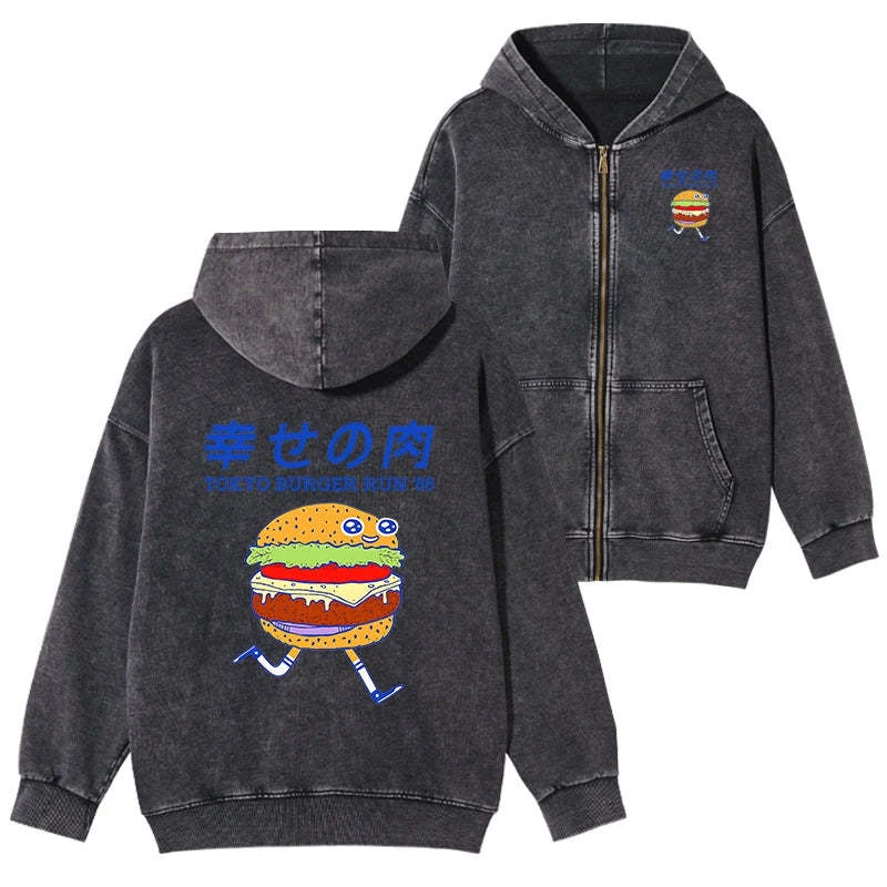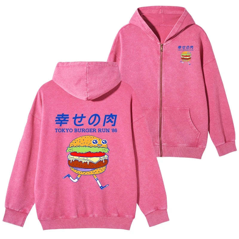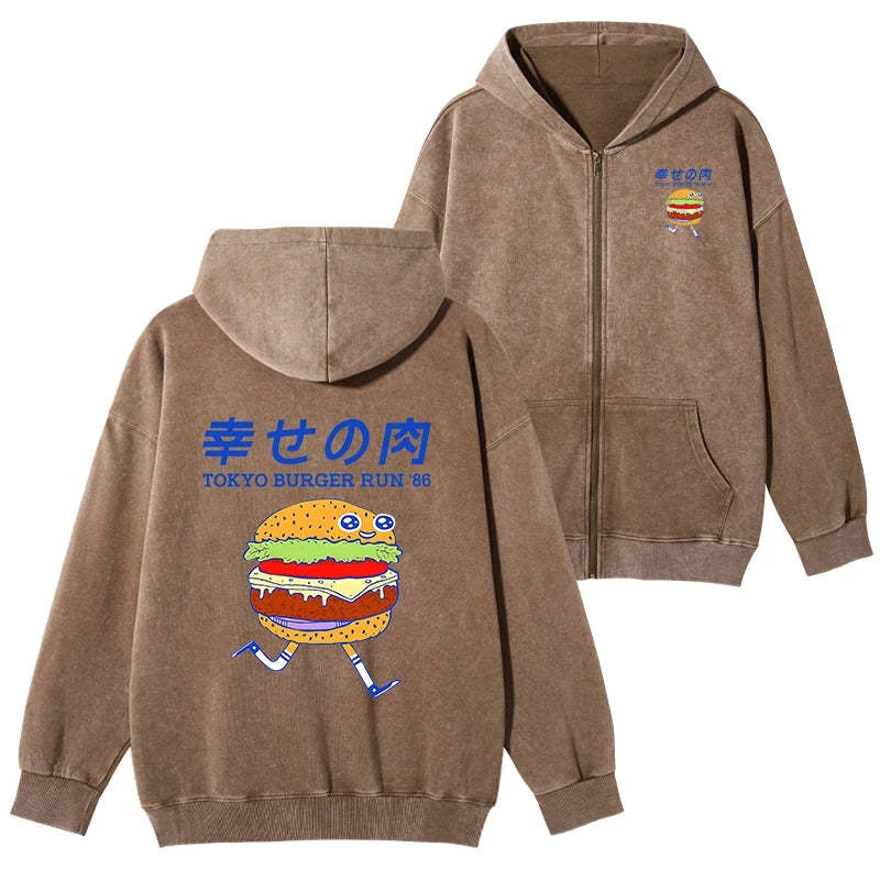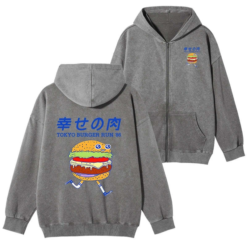 Tokyo-Tiger Tokyo Burger Run Japanese Washed Zip Hoodie