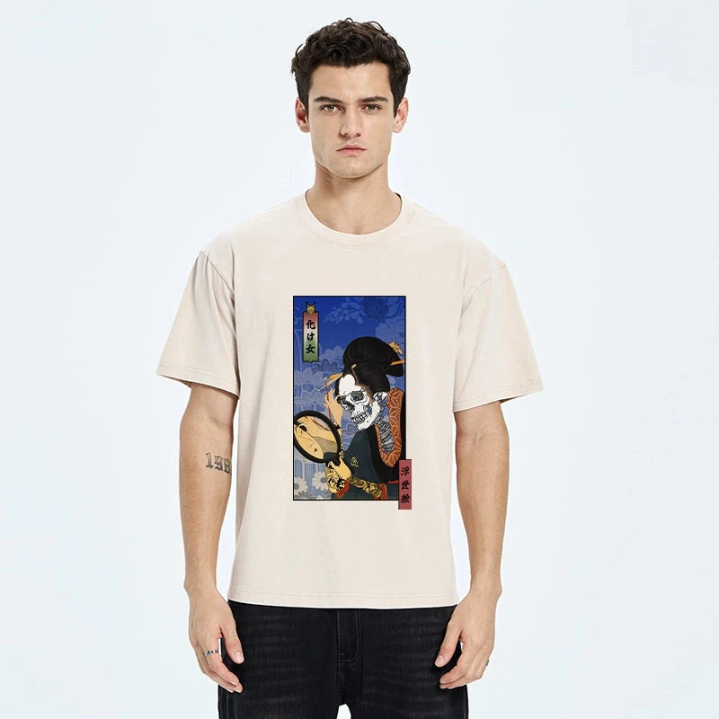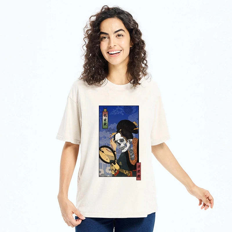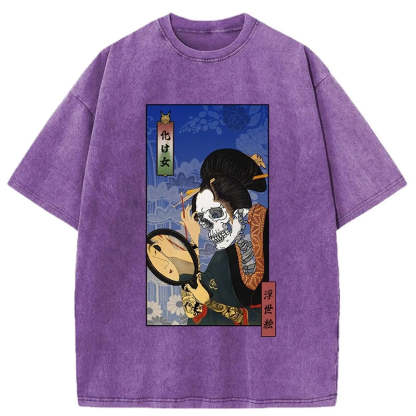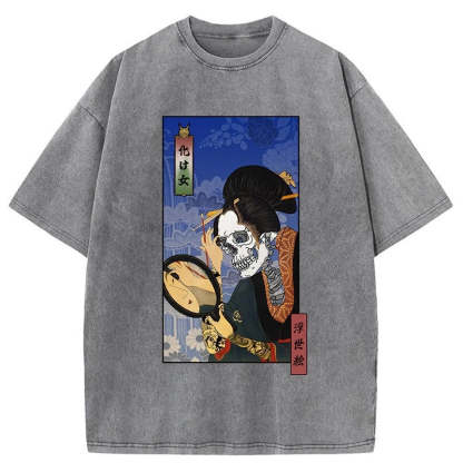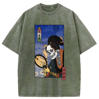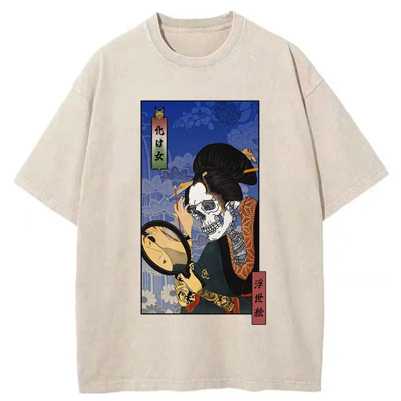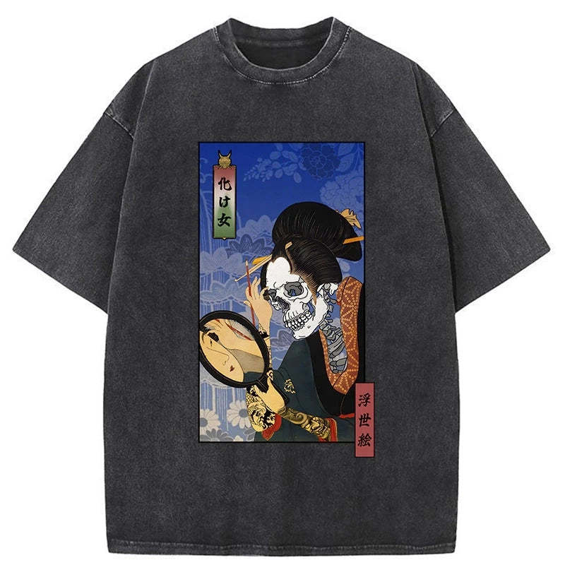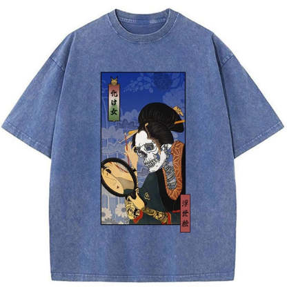 Tokyo-Tiger Ukiyoe Skeleton Girl Washed T-Shirt