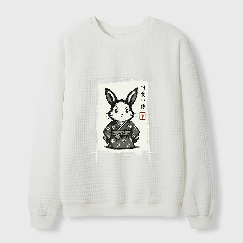 Tokyo-Tiger Woodcut Bunny Waffle Sweatshirt