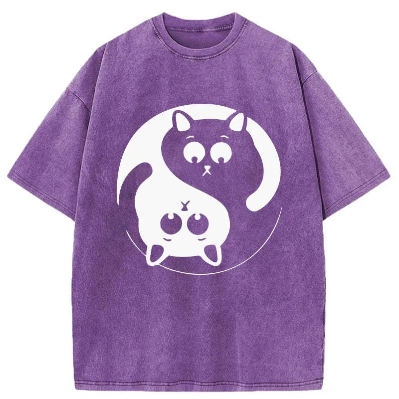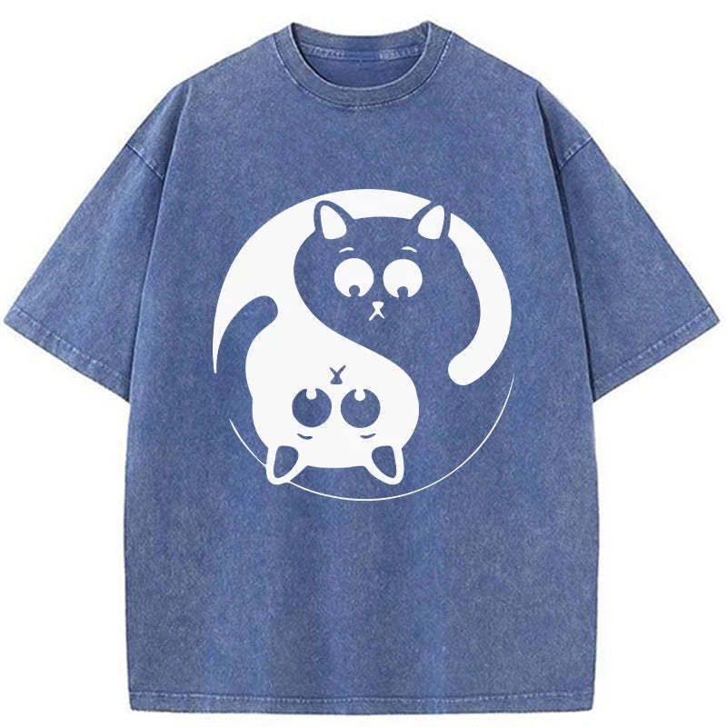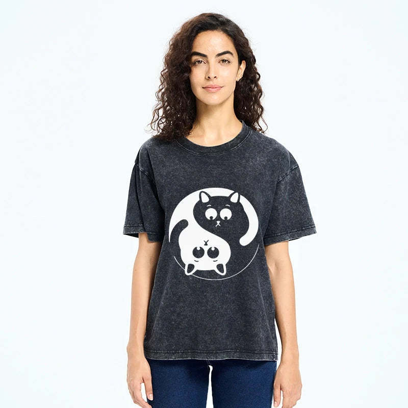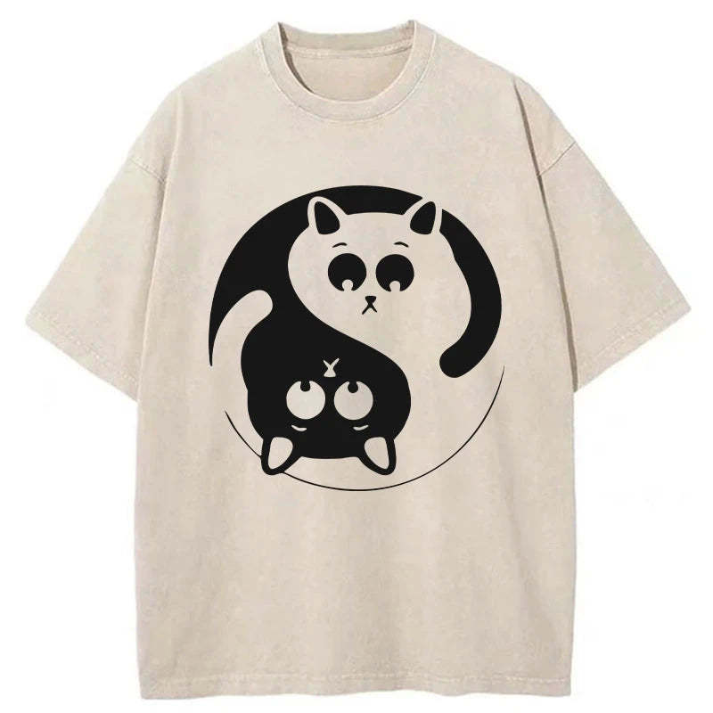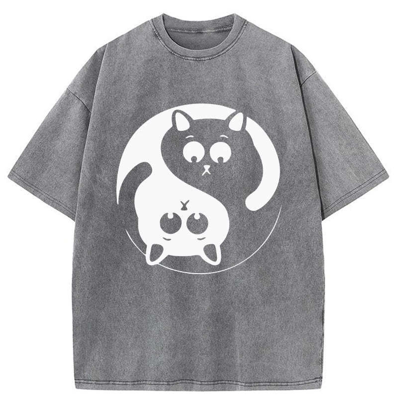 Tokyo-Tiger Yin Yang Gossip Cat Washed T-Shirt